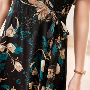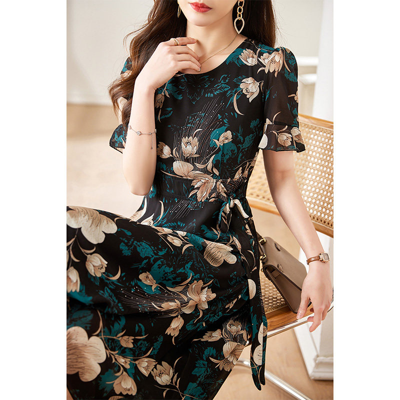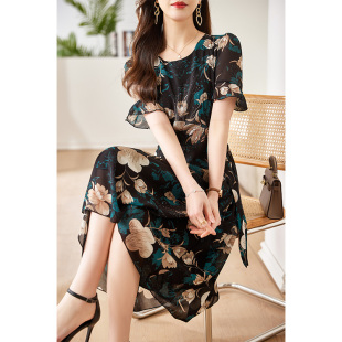 洋气过膝长裙收腰显瘦大码 雪纺碎花连衣裙女2023新款 裙子 短袖 夏季