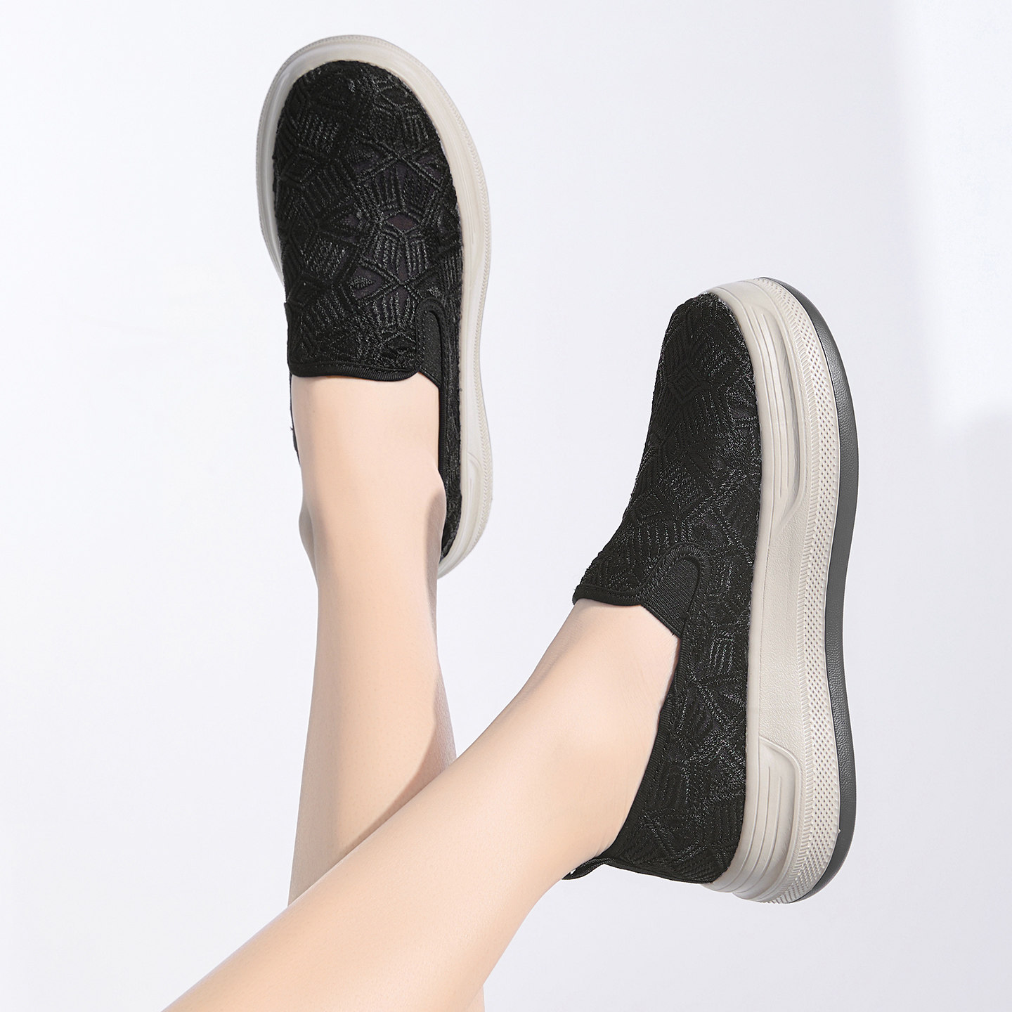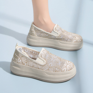 透气舒适厚底网面单鞋 Tt&Mm 2026夏季 蕾丝一脚蹬帆布鞋 汤姆斯女鞋