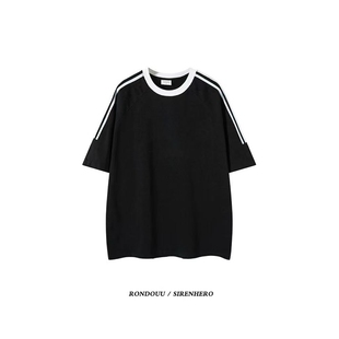22Z品牌100%棉 男女同款 明星同款 T恤短袖 三条杠情侣T恤 夏美式