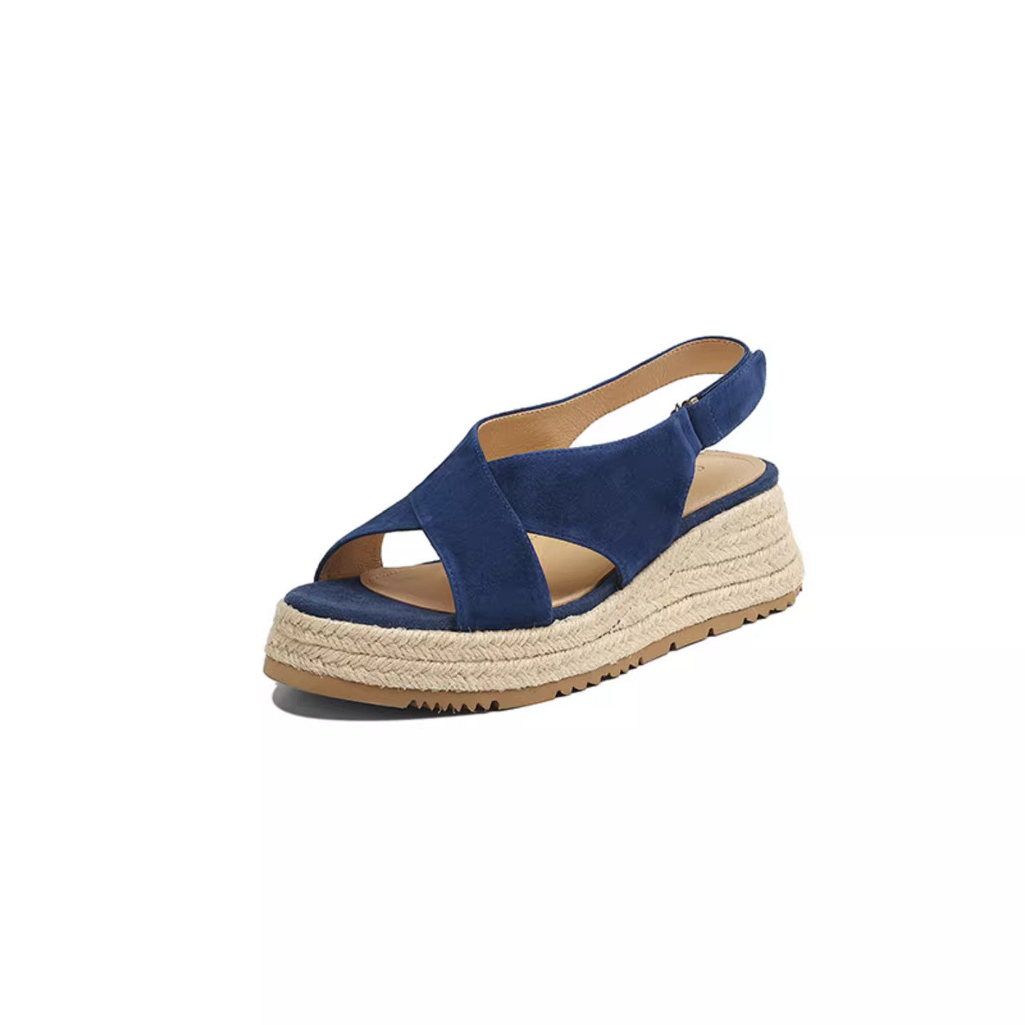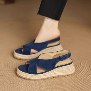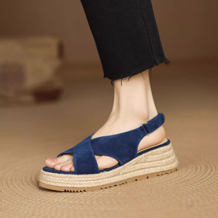 磨砂皮草编渔夫鞋 软皮交叉带罗马凉鞋 女休闲增高厚底松糕鞋