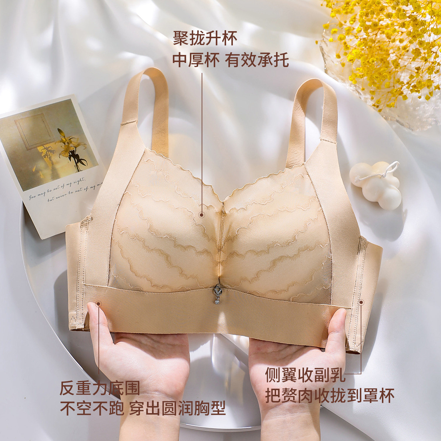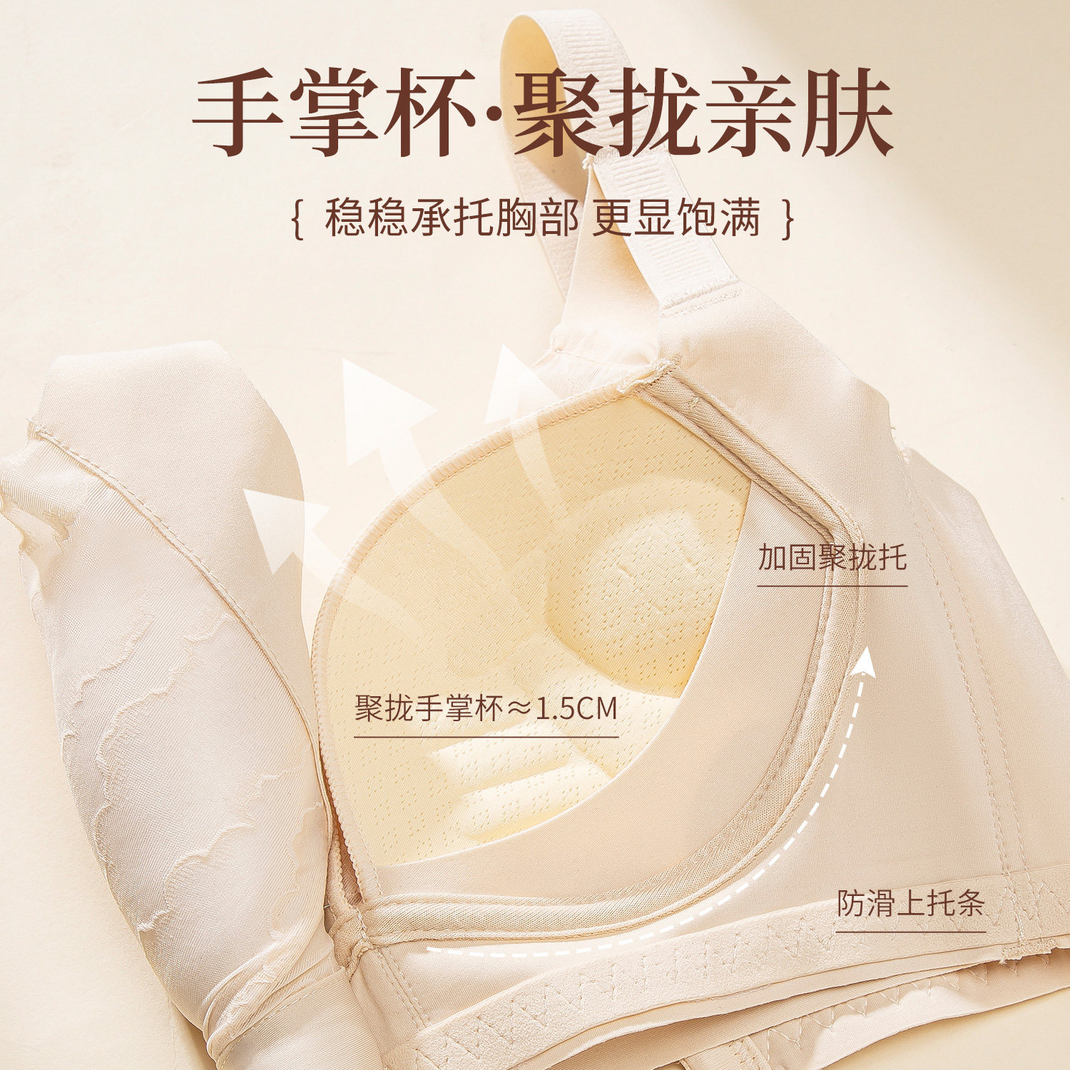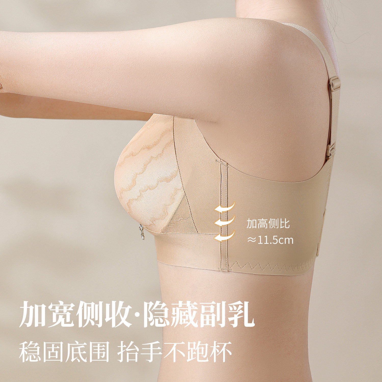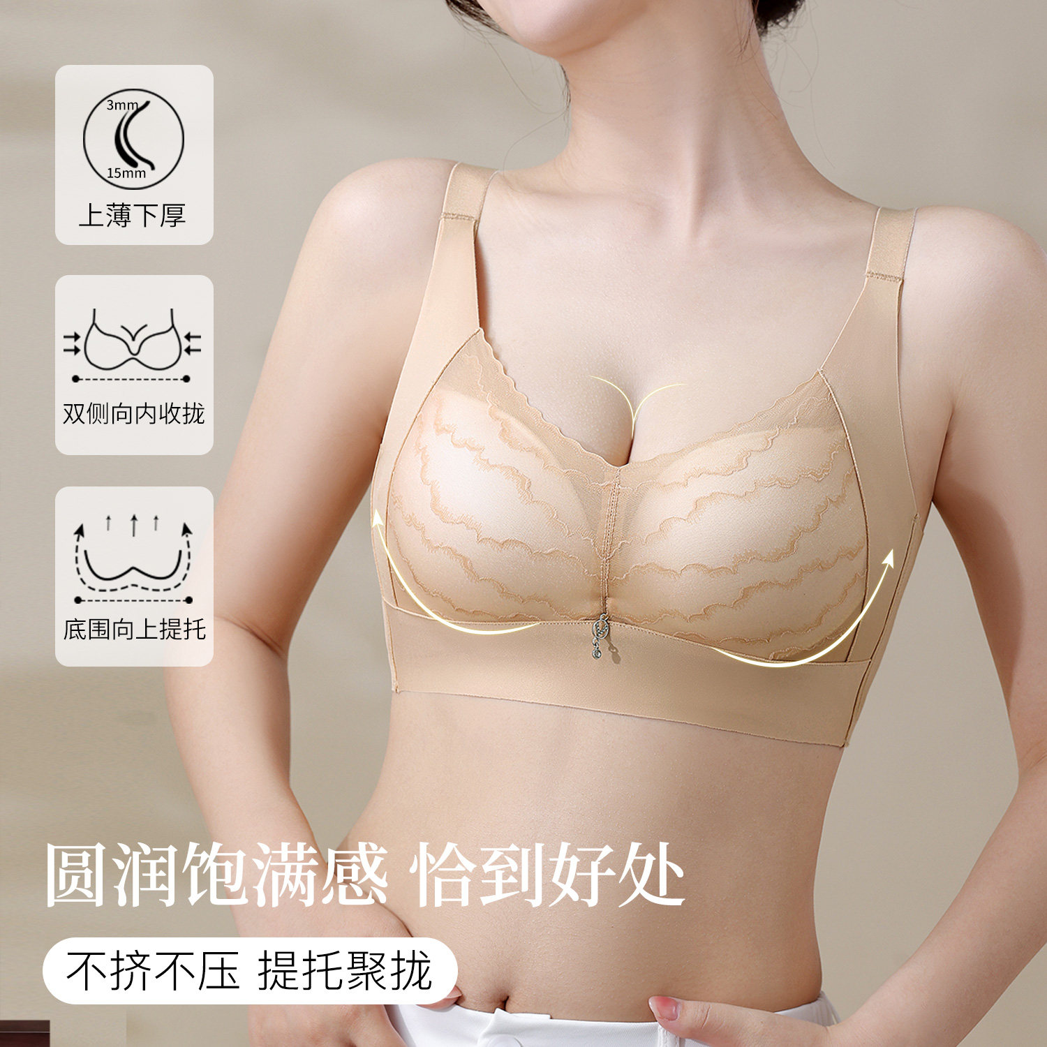 内衣女小胸聚拢中厚显大上托性感收副乳防下垂调整型文胸 杏绾