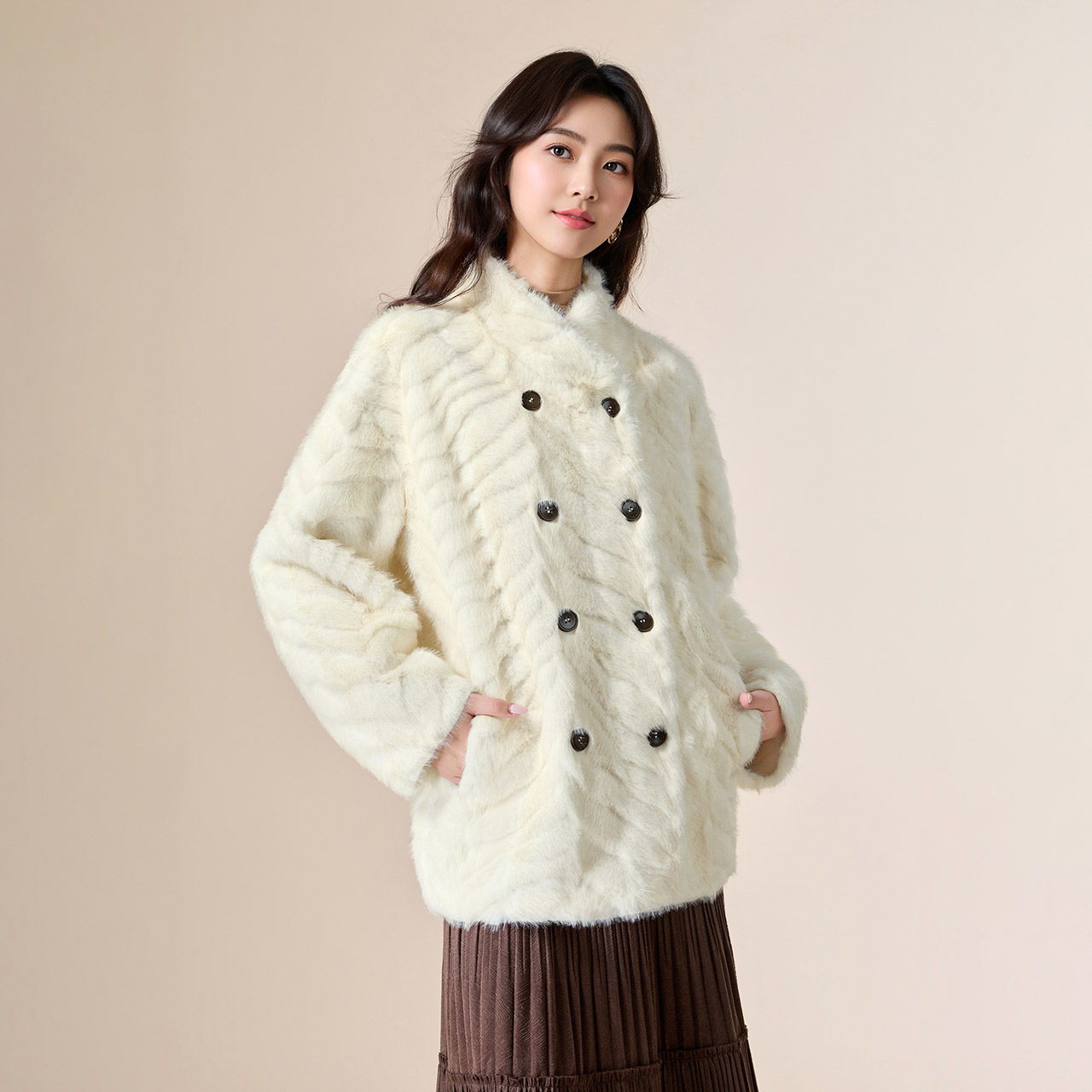 IEF 皮毛一体外套女好看保暖温柔气质仿皮草大衣 爱依服2025年冬季