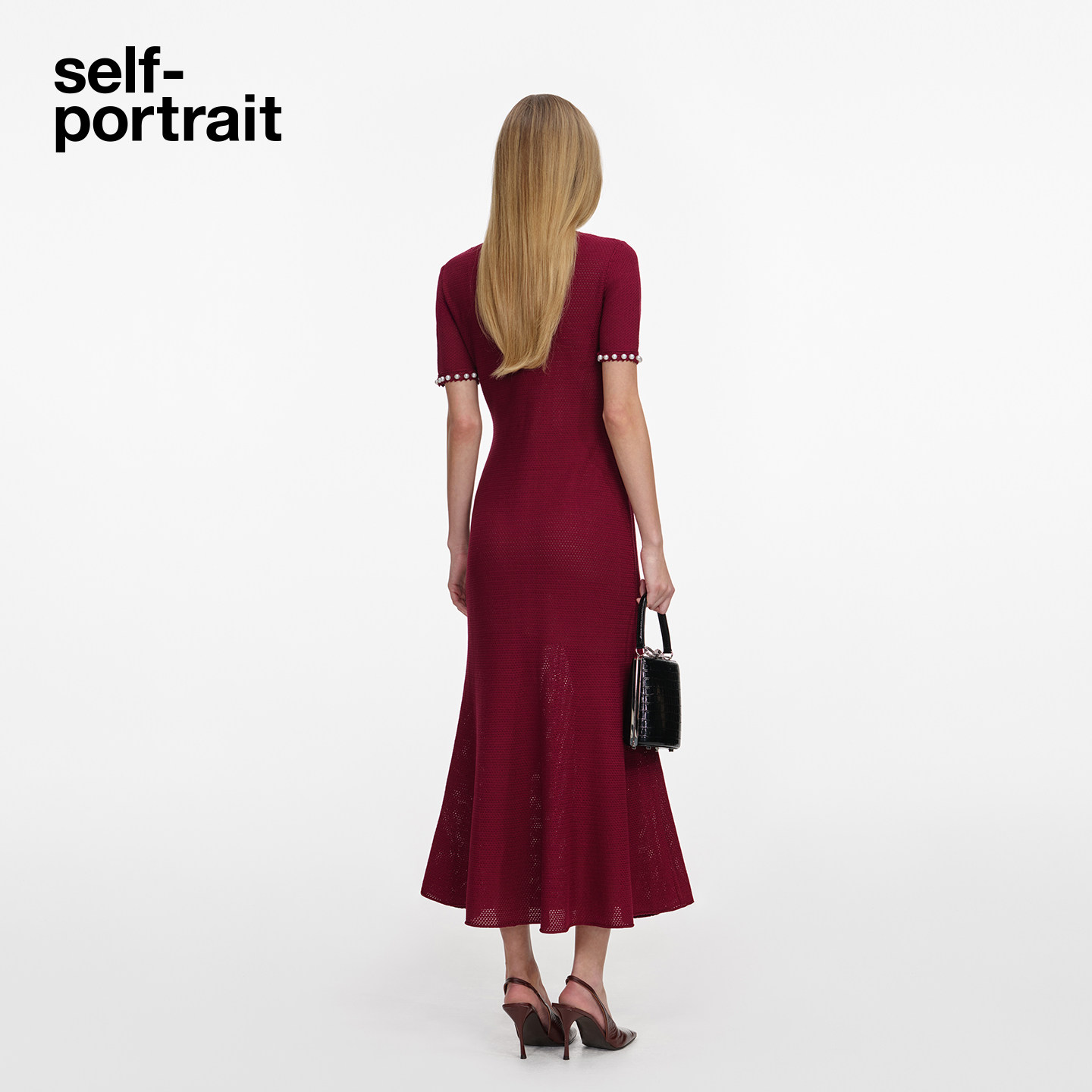 酒红色优雅珠饰短袖 2026春夏新款 针织连衣裙中长裙 portrait self