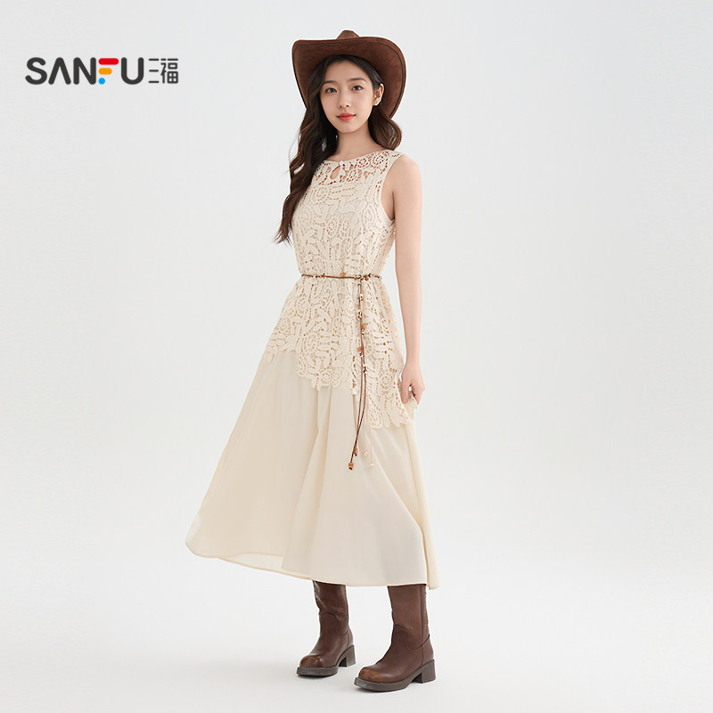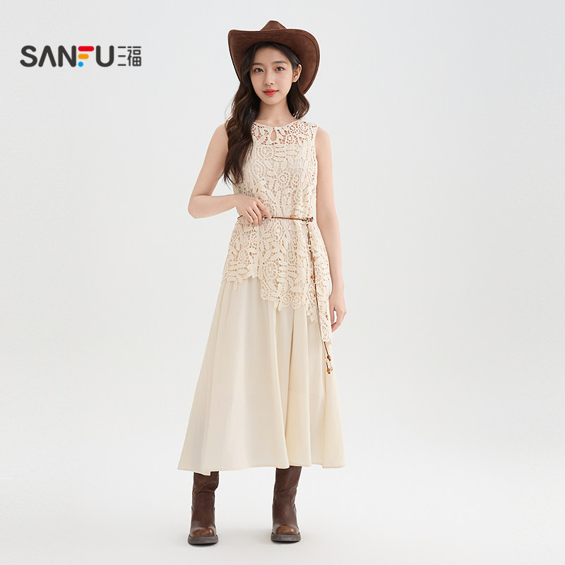 吊带裙子两件套女装 气质蕾丝罩衫 520257 夏季 三福连衣裙女2026新款