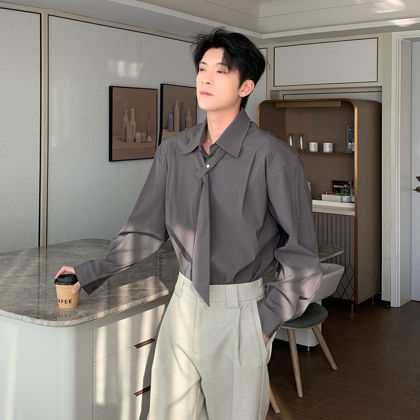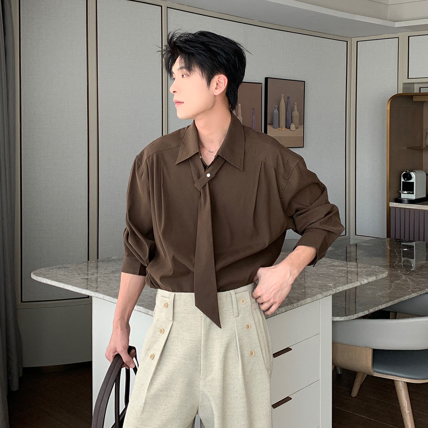 老钱风高智免烫休闲白衬衣男款 Hualun春季 男长袖 纯色衬衫 透气薄款