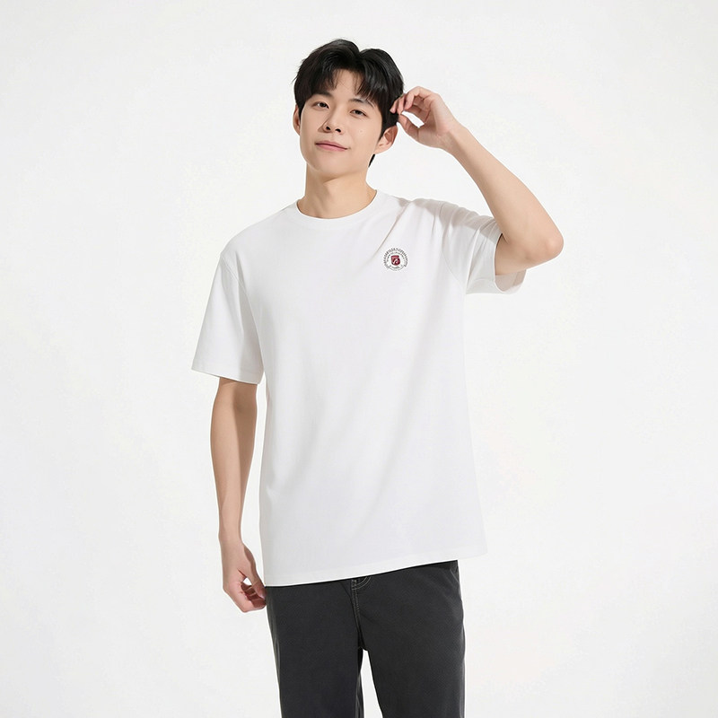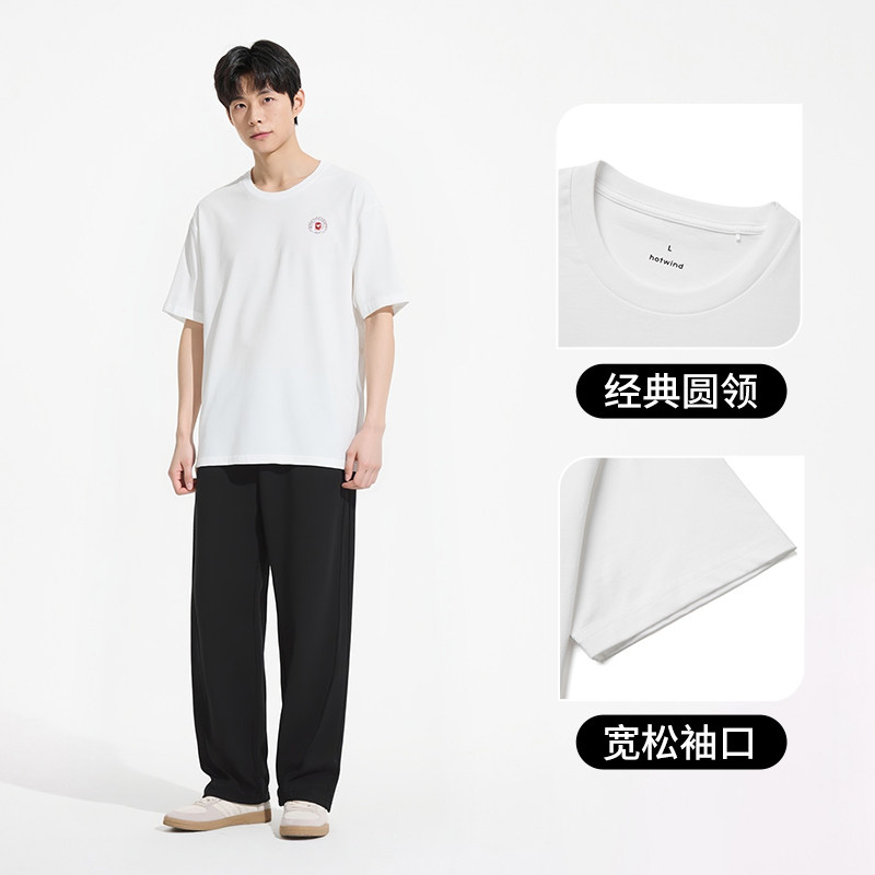 新款 T恤上衣2026年夏季 图案短T恤柔软棉宽松T恤 白色短袖 热风男士