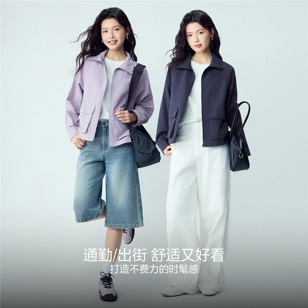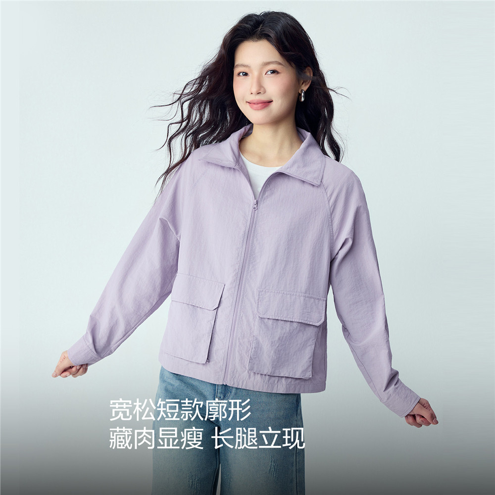 05376069 口袋插肩夹克开衫 佐丹奴外套女2026年春季 黑科技凉感工装