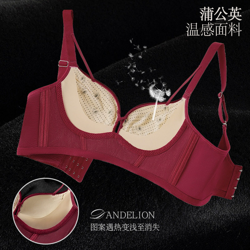 秋冬新款 8788 丝绒红色内衣女小胸聚拢不空杯防下垂调整型文胸套装