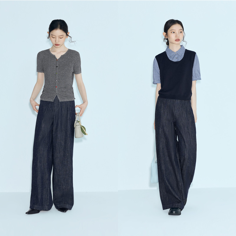 L2B6NK127C 彩点肌理牛仔裤 indicia标记2026夏新款 松弛复古风长裤