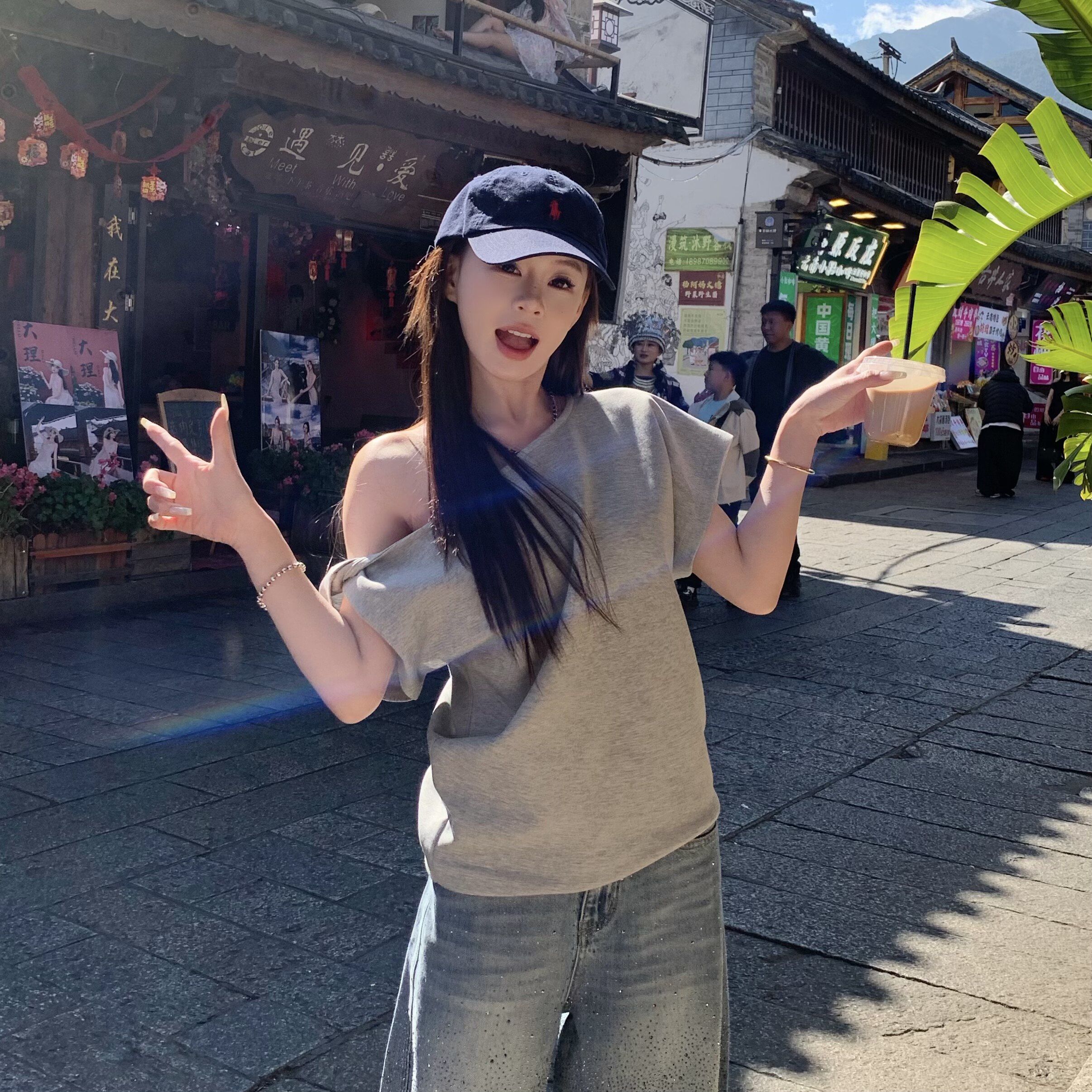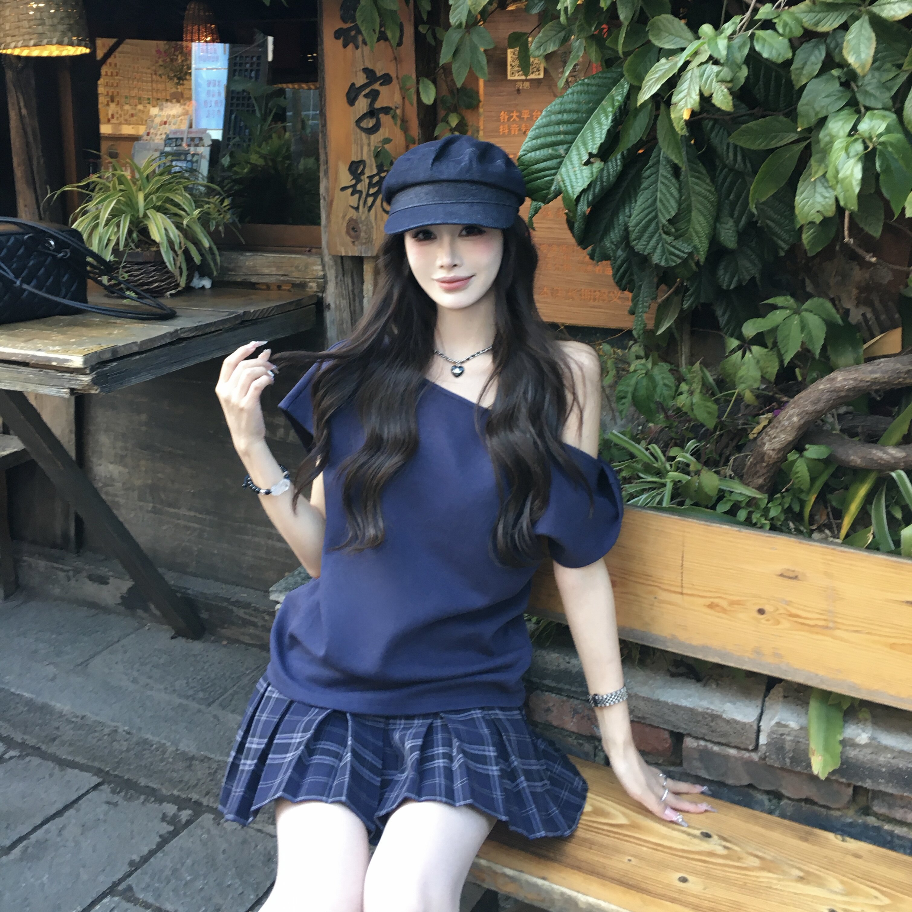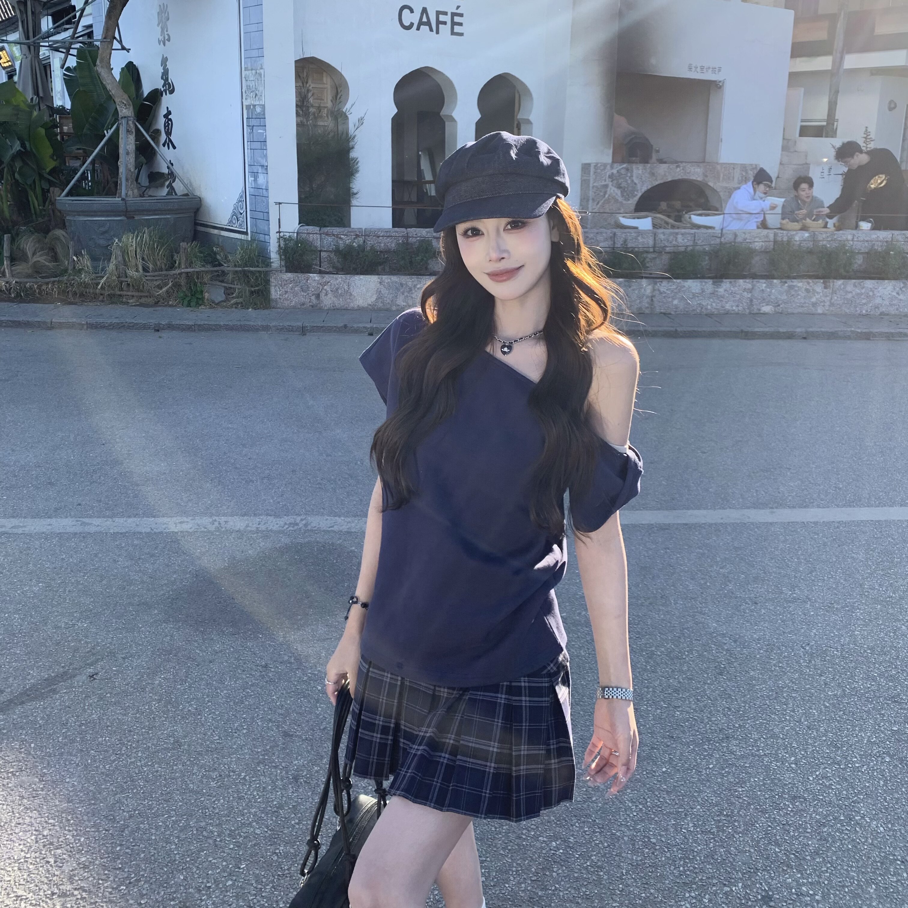 上衣 韩系百搭露肩短袖 3MER哦哦三妹 高智感斜肩T恤女2026春夏新款
