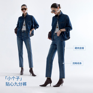 新款 深蓝色窄版 女高腰显瘦2025春秋装 直筒牛仔裤 小个子宽松 阔腿裤