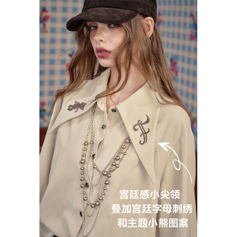 设计感长袖 妖精 女2025年早秋新款 宫廷风木耳边衬衫 衬衣 口袋法式