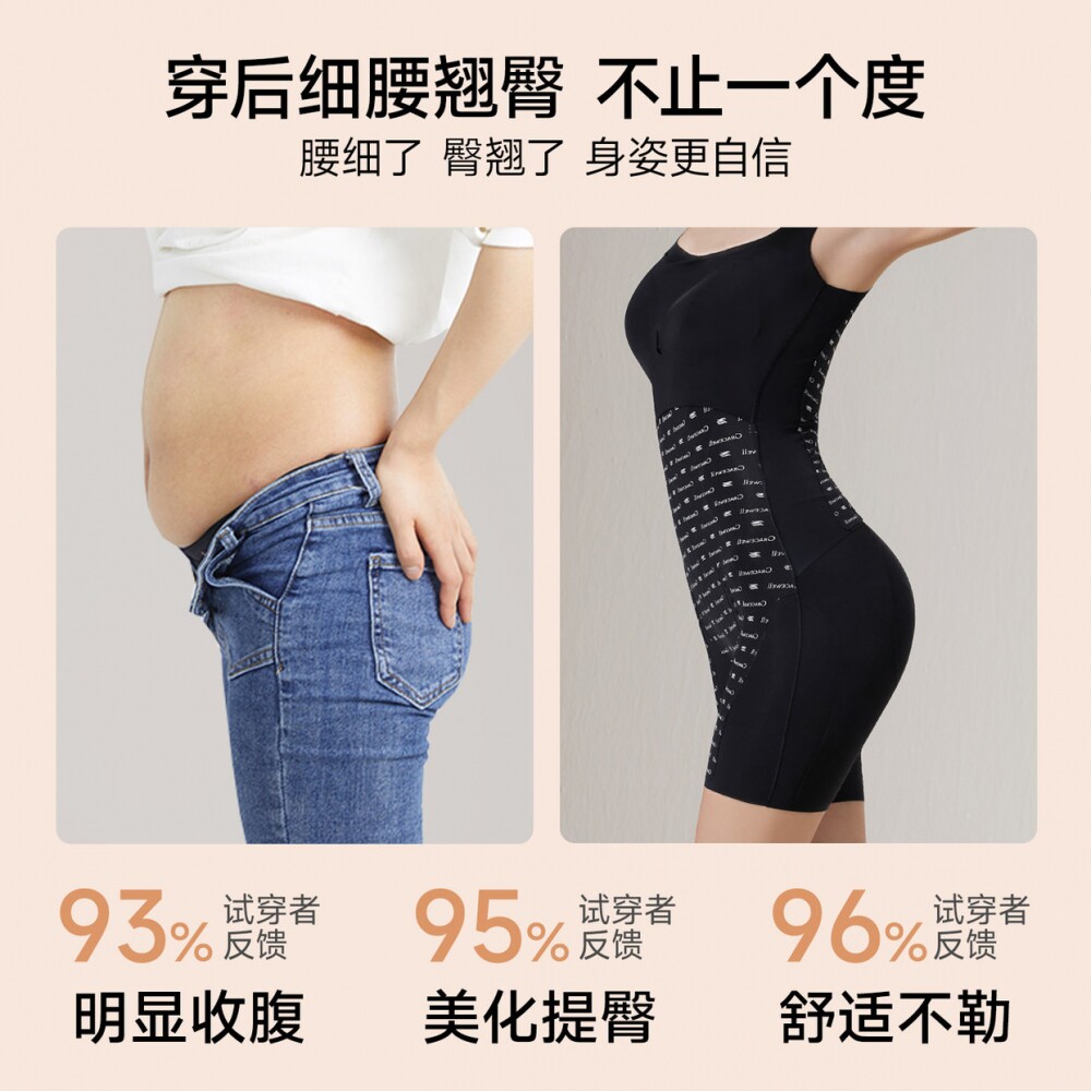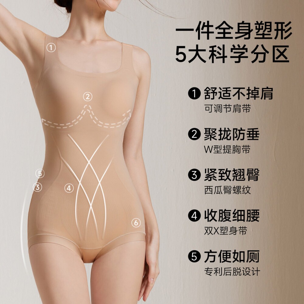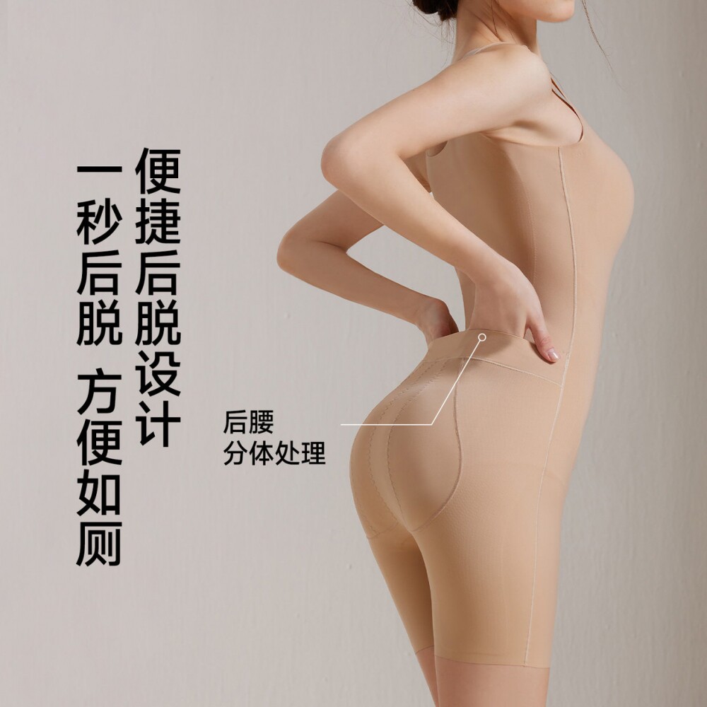 婷美塑身衣女收腹提臀聚拢防垂10A抑菌生姜温变底裆显身材连体衣