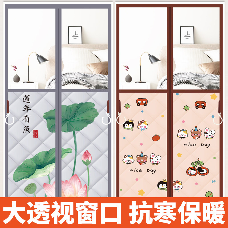 棉门帘冬季 保暖防风加厚家用磁性自吸免打孔隔断冷气挡风透明隔音