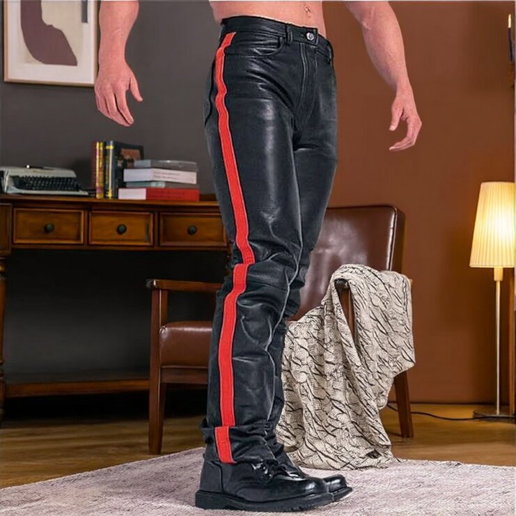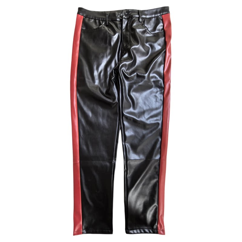 潮流帅气雅痞长裤 男生PU皮秋冬防水抗寒保暖直筒修身 机车条纹皮裤