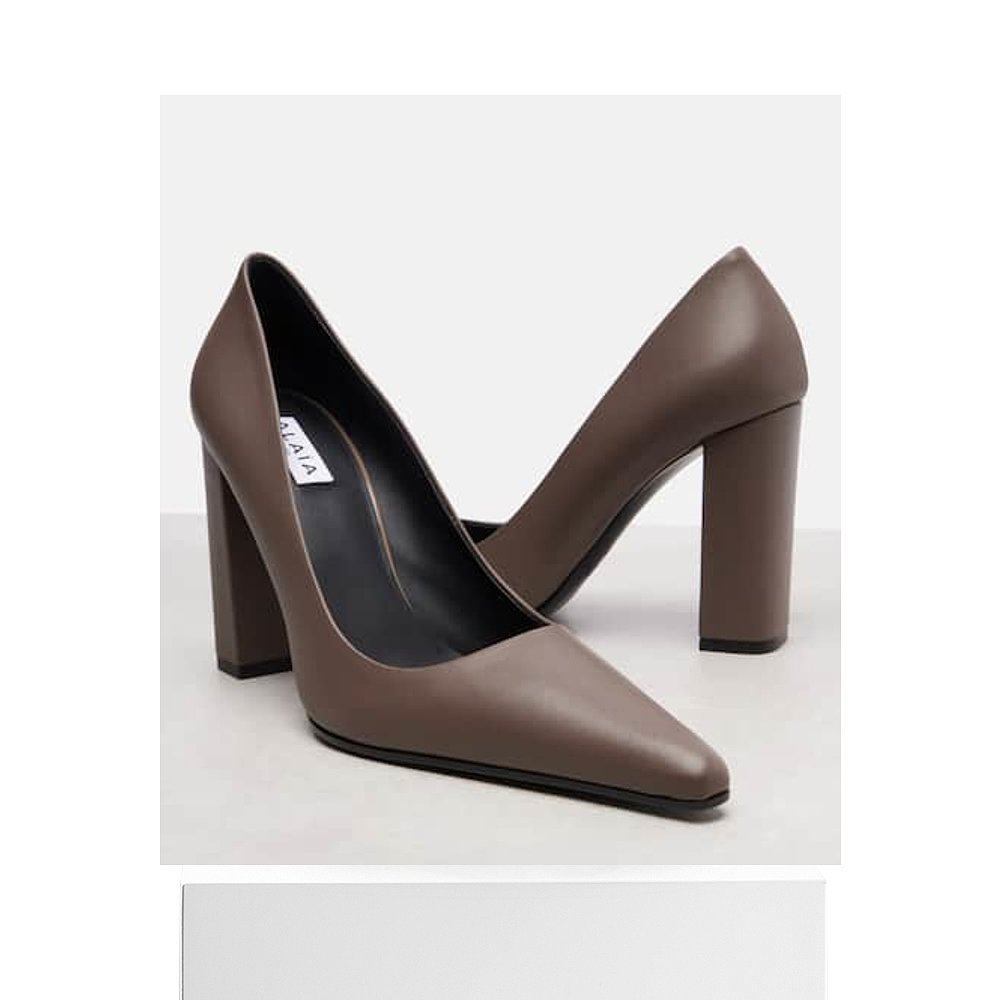 香港直邮Alaia 舒适时尚 女士 brown棕色 尖头皮质浅口鞋 1h可退