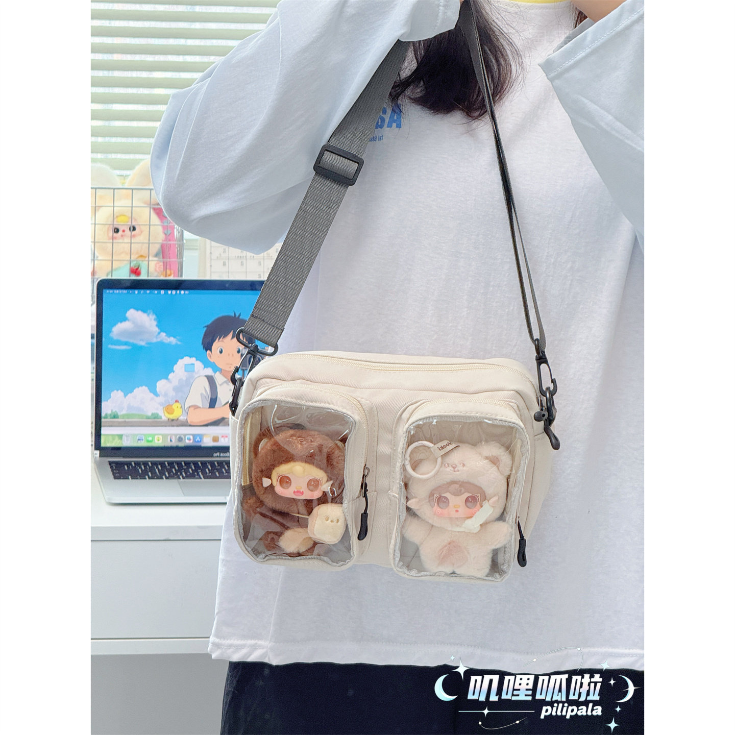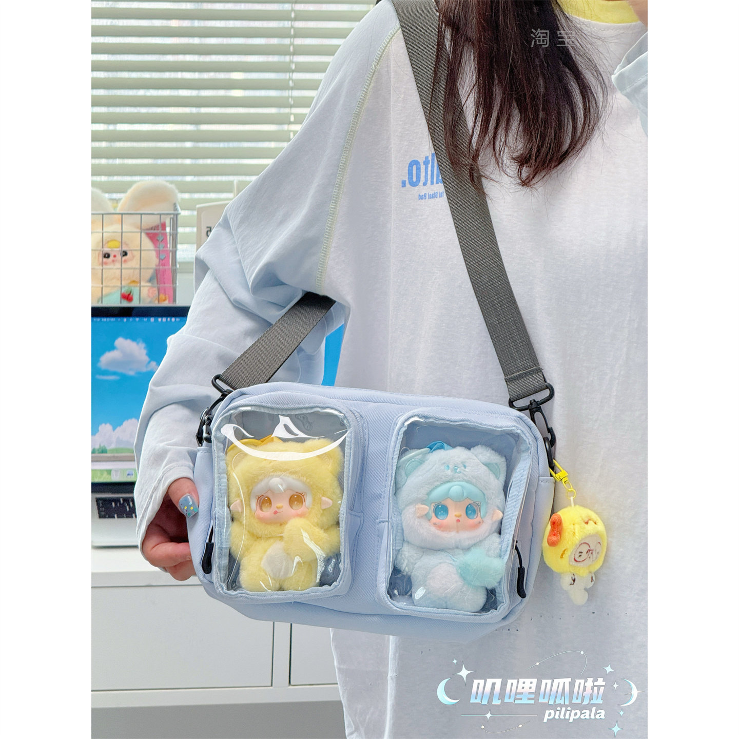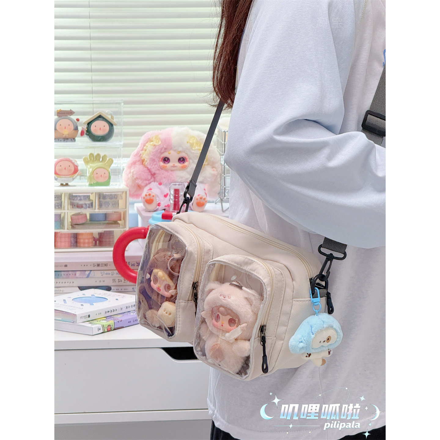 ins风纯色双视窗透明痛包斜挎包 女大学生上课通勤手机包15cm娃包