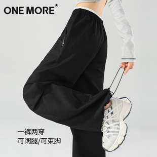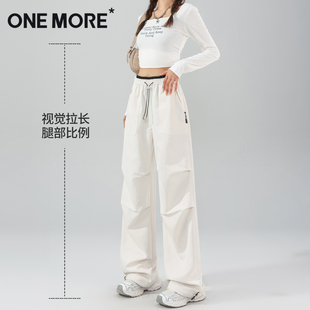 女小个子拼色伞兵裤 裤 秋季 2025新款 one 运动阔腿裤 more白色工装