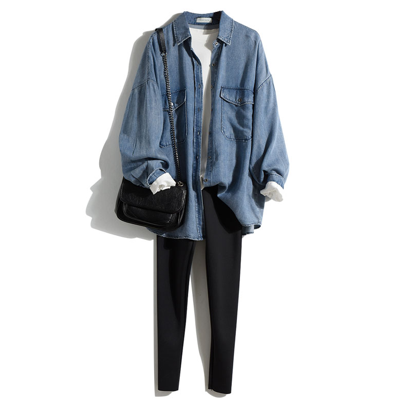 宽松显瘦衬衣外套 女装 中长款 春秋款 上衣 女士莱赛尔牛仔蓝衬衫
