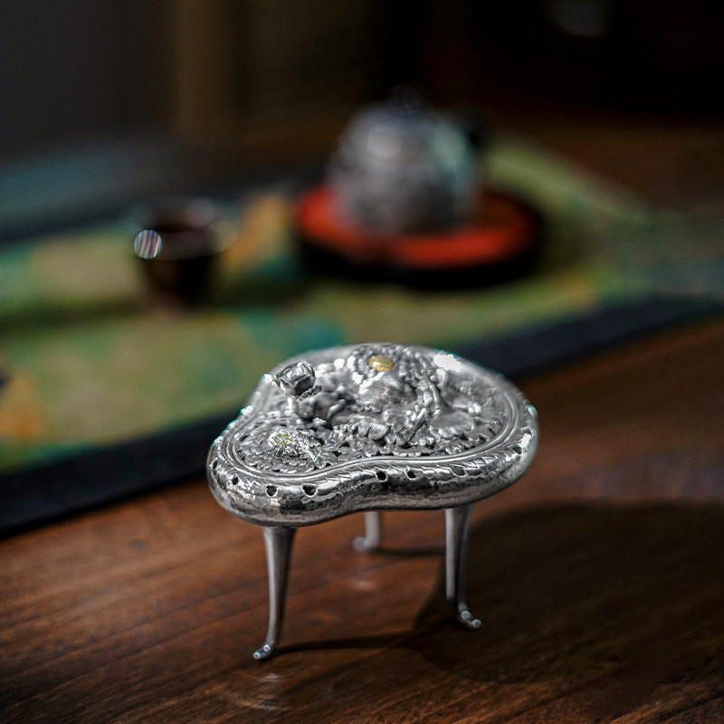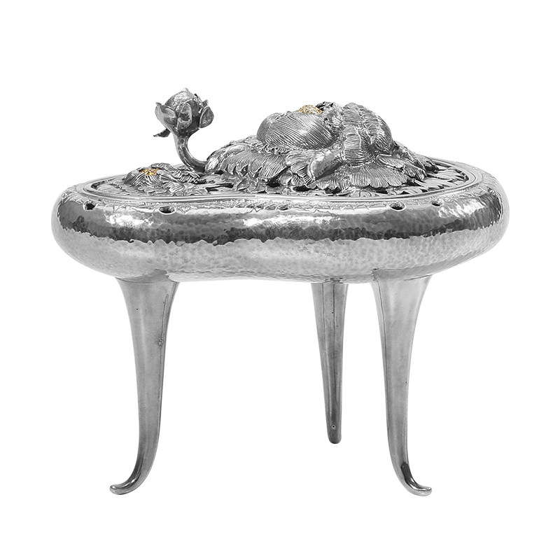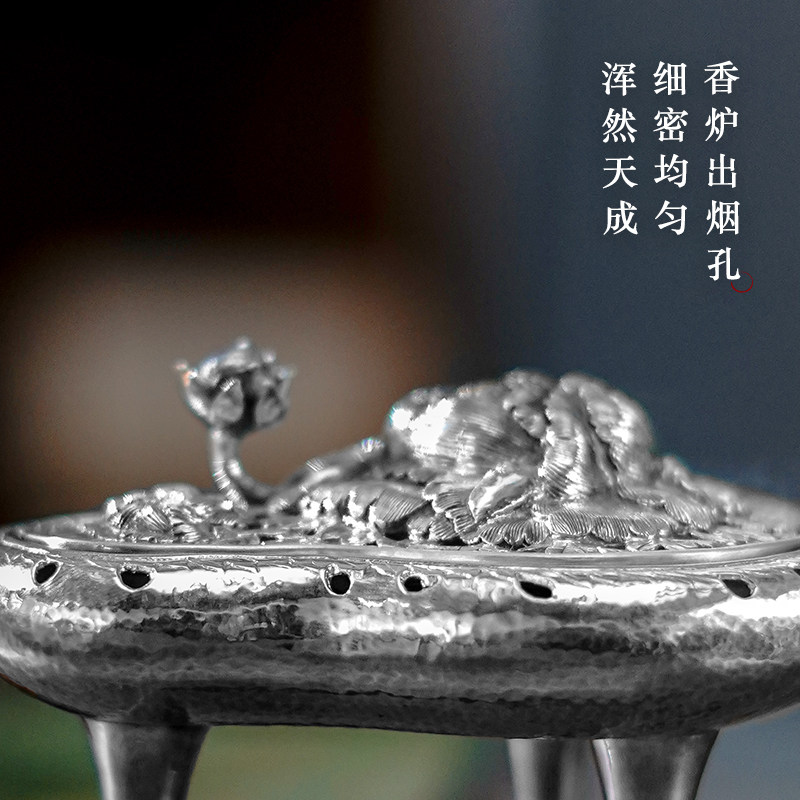 纯银999纯手工银香炉非遗张家松手作錾刻高端中式 沁凡 禅意香炉