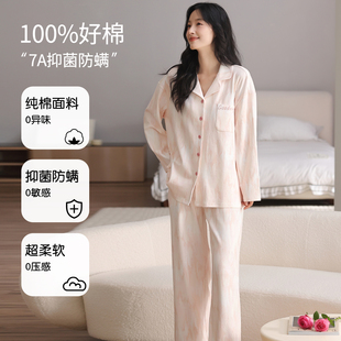 家居服套装 浪莎睡衣女款 抗菌纯棉布料100%全棉长袖 2025新款 春秋季