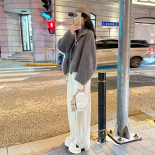 慵懒风双面羊毛大衣女中长款 灰色毛呢外套高级感
