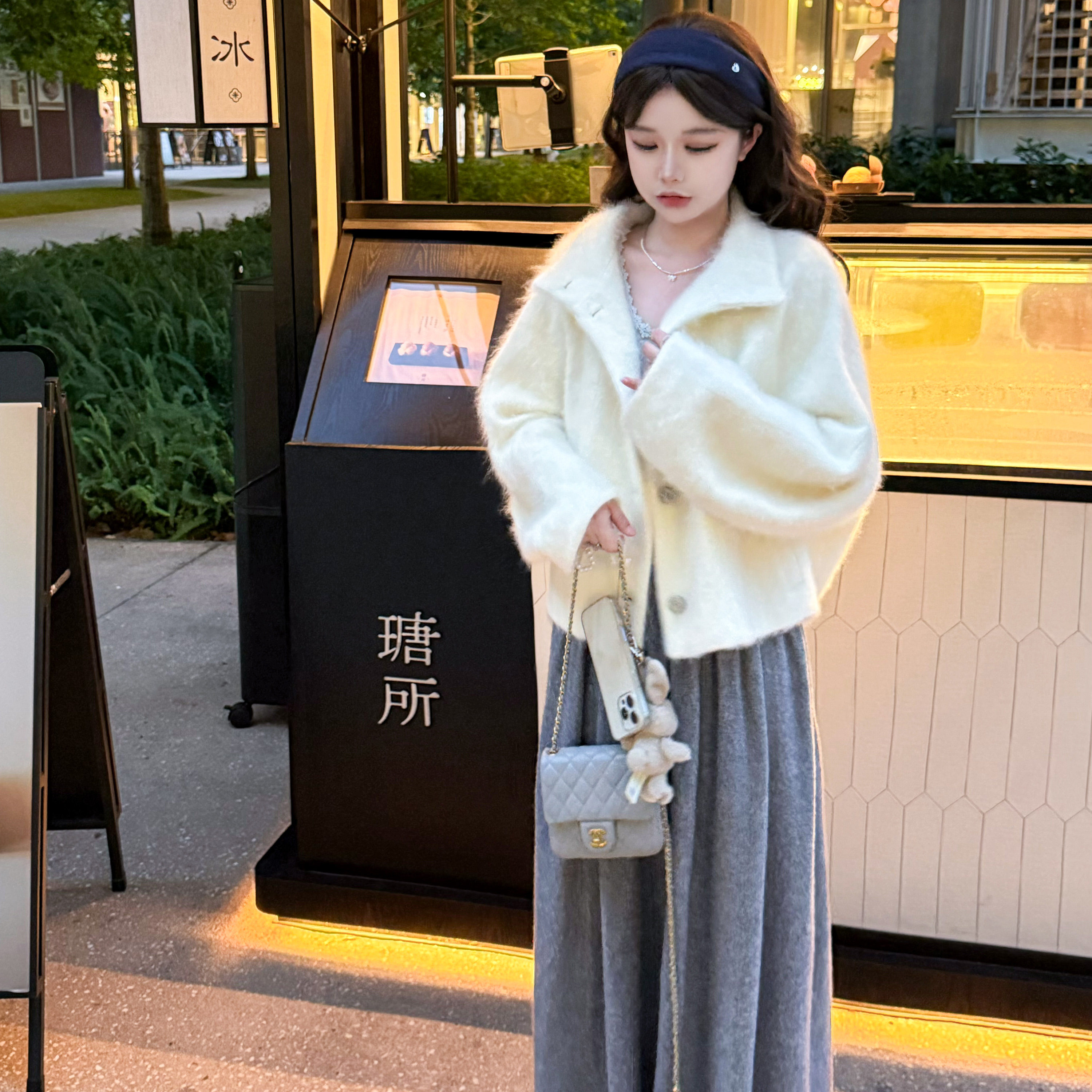 套装 MULVAN 外套女半身裙高腰裙裤 复古宽松撞色毛呢西装 旧厅橱窗