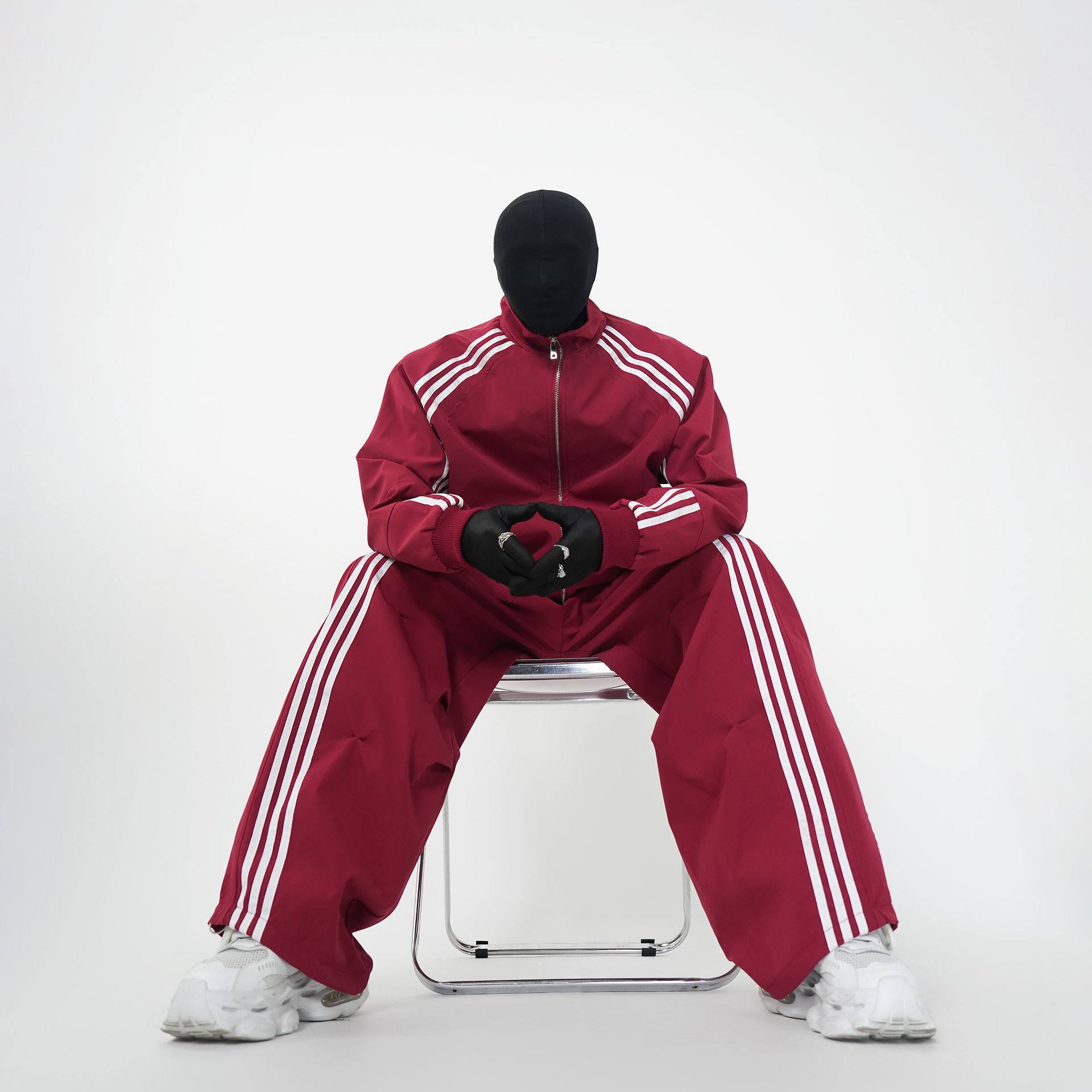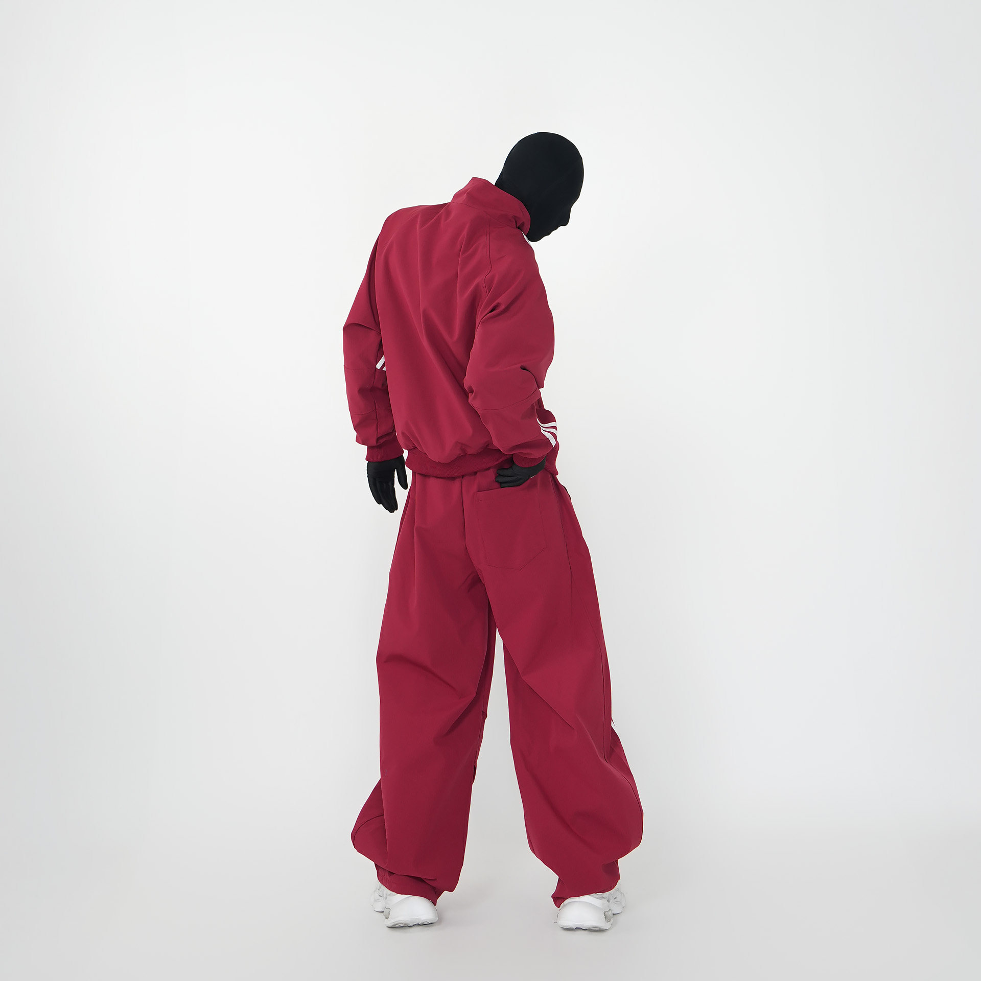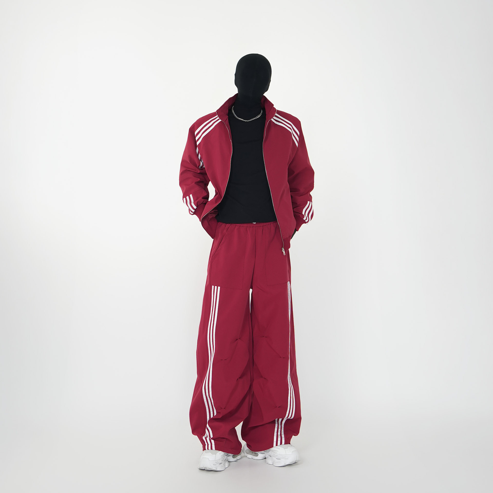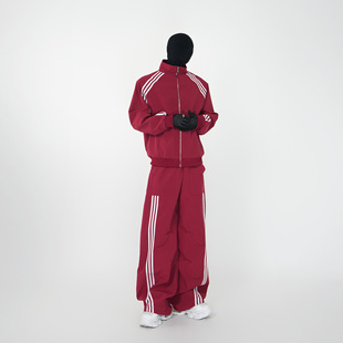 男女立领防泼水红色赛车服套装 三条杠休闲弯刀直筒阔腿裤 美式 VE2