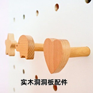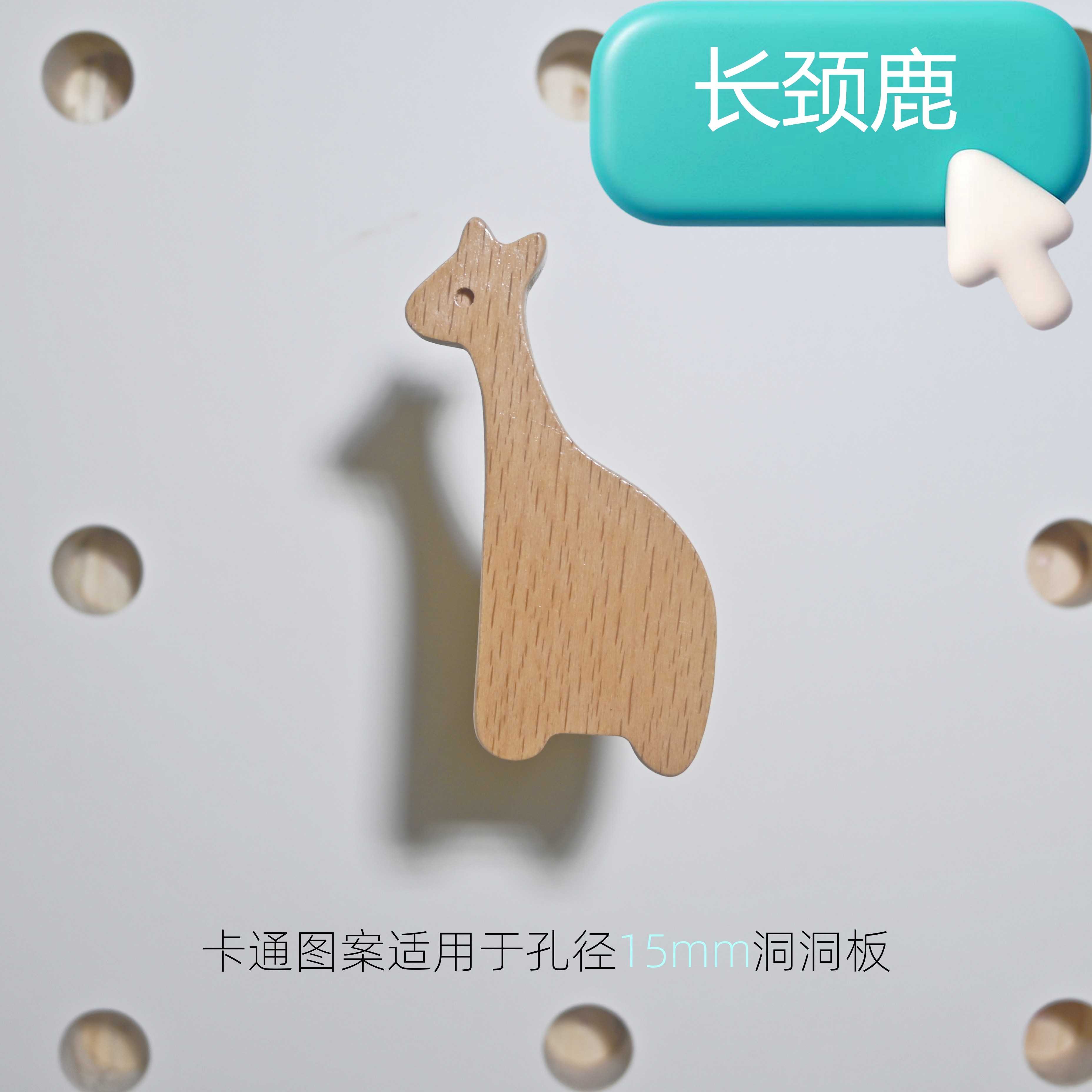 洞洞板配件火柴挂钩卡通创意可爱动物造型原木清漆儿童房15mm圆孔