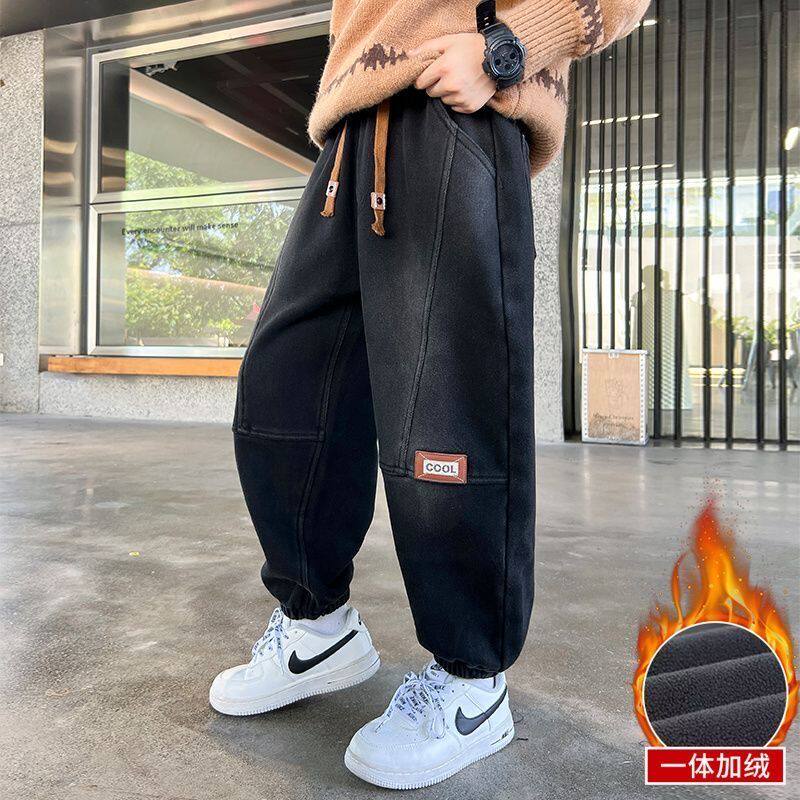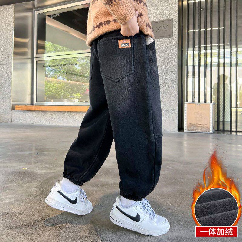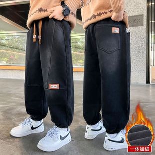 子秋冬款 大童加厚长裤 2025新款 一体绒牛仔裤 潮 儿童冬季 男童加绒裤
