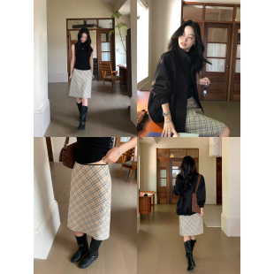 pusumede 复古格纹半身裙女学院风气质显瘦a字中长裙子 文艺帧间
