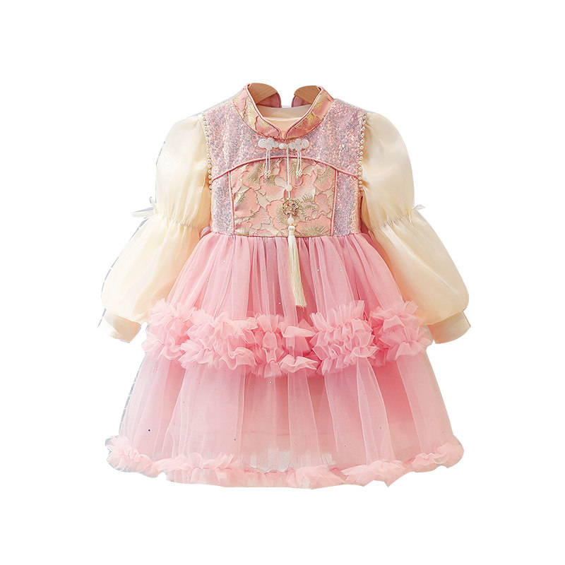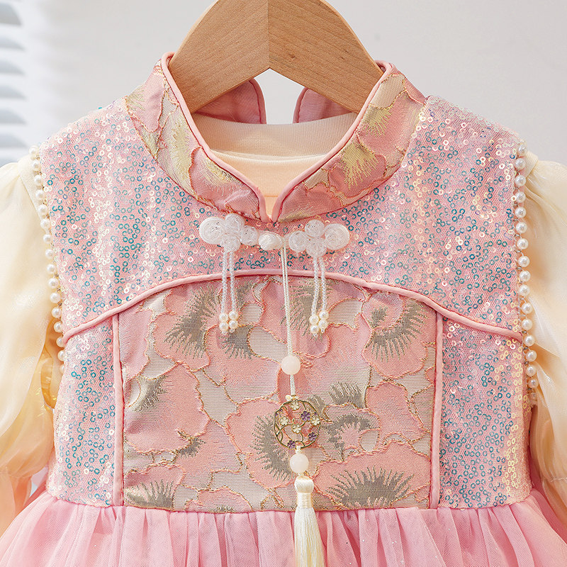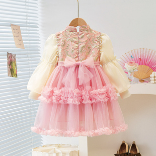 新中式 胖mm夏季 改良旗袍连衣裙高级感刺绣网纱拼接长裙子 女装 大码
