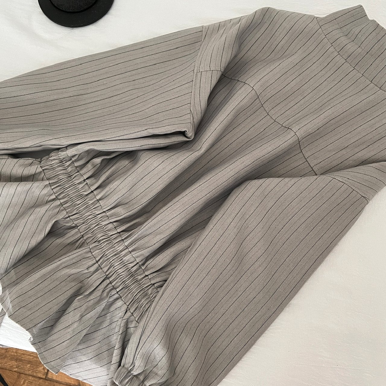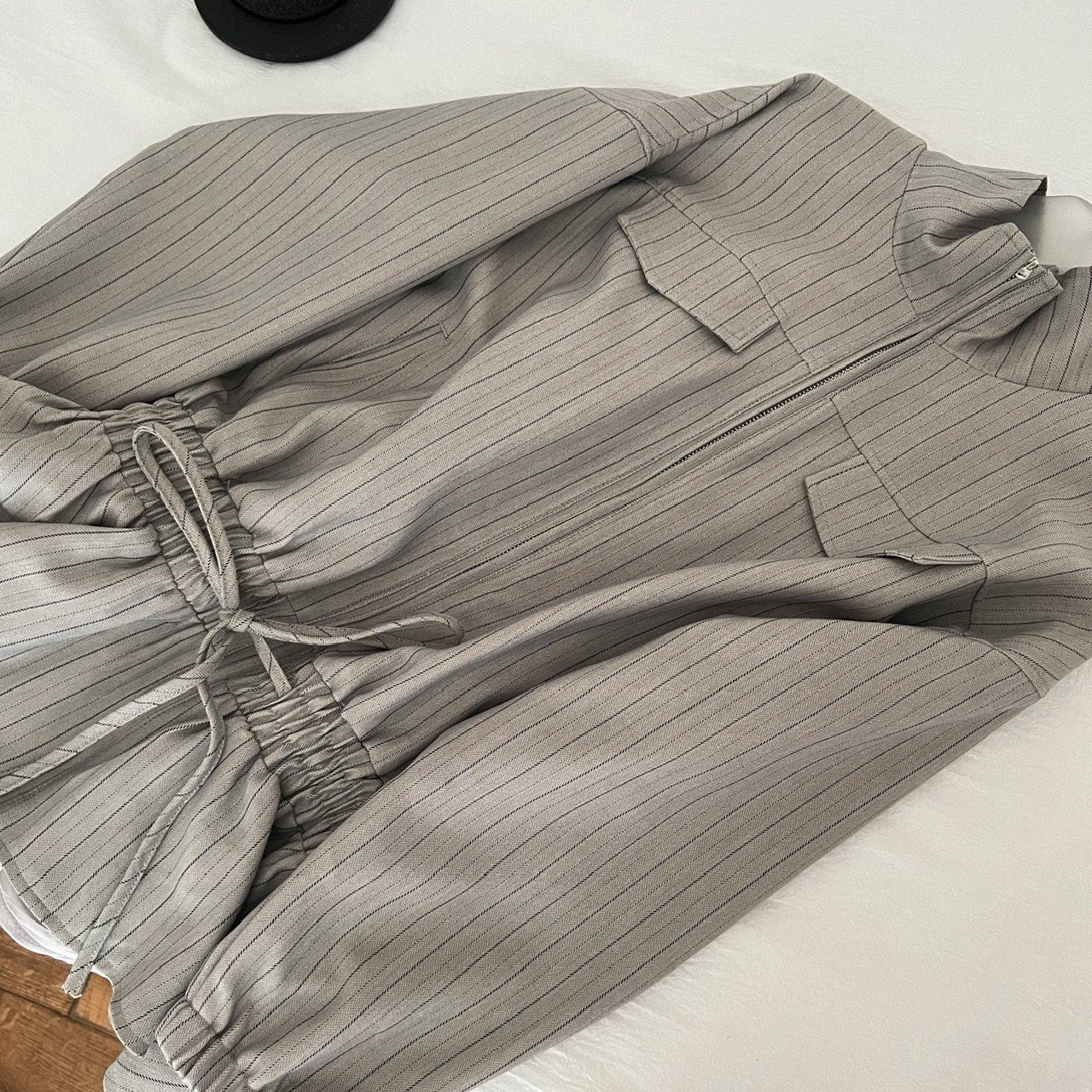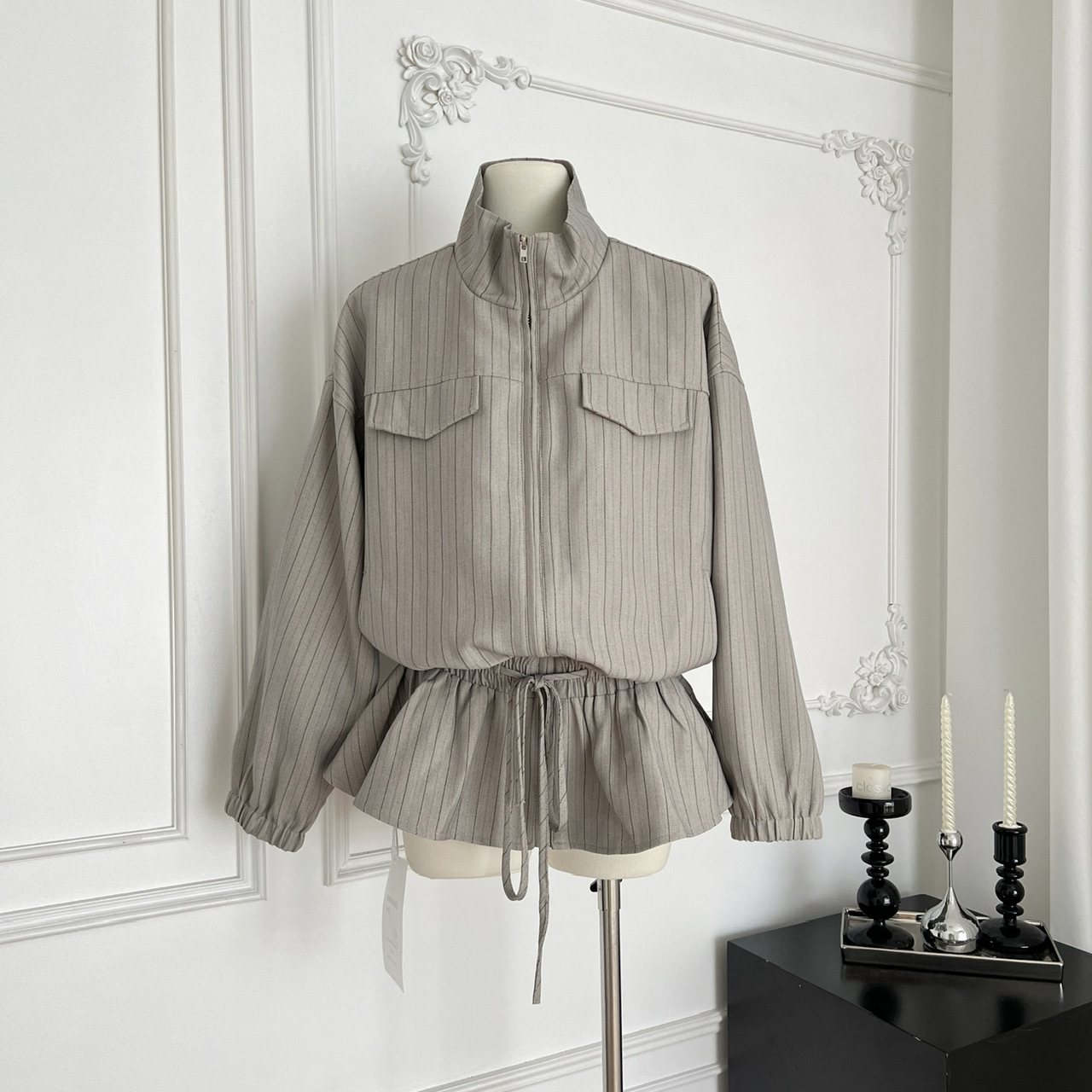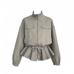 LIULIUGE甜酷辣妹风翻领条纹收腰抽绳设计感显瘦外套拉链夹克早秋