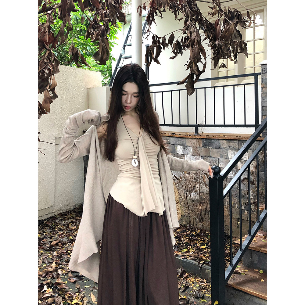 宽松显瘦上衣 外套女秋季 MaxMooroe素色清冷感%高级感法式 针织开衫