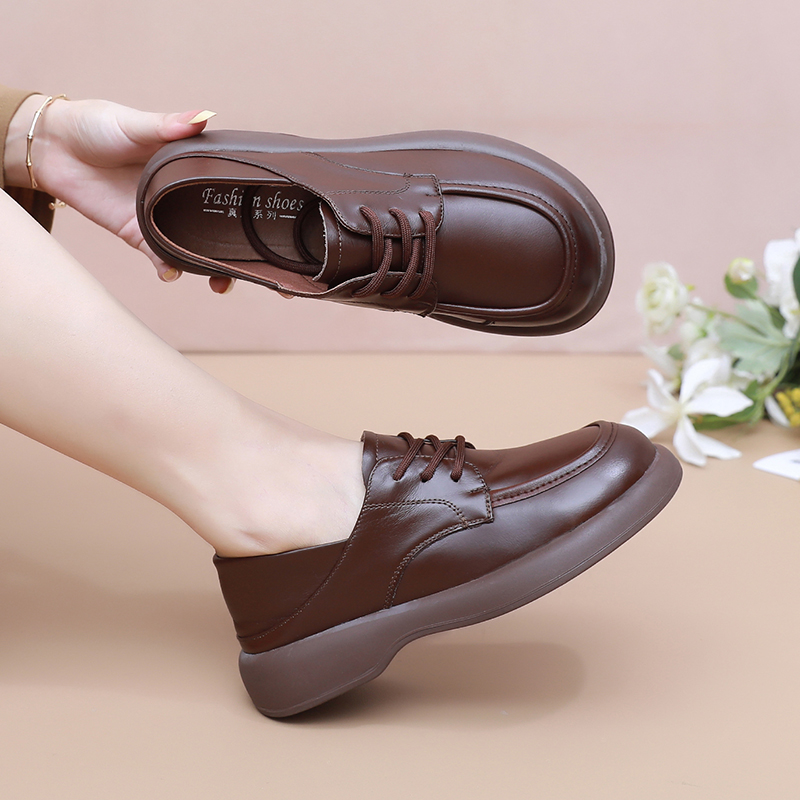 百搭舒适软底圆头乐福鞋 春秋真皮新款 单鞋 复古英伦洋气皮鞋 女鞋
