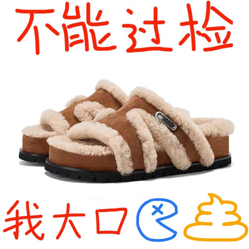 欧货高级感网红拖鞋 爆款 外穿2025新款 女冬季 厚底毛绒棉拖 毛毛拖鞋