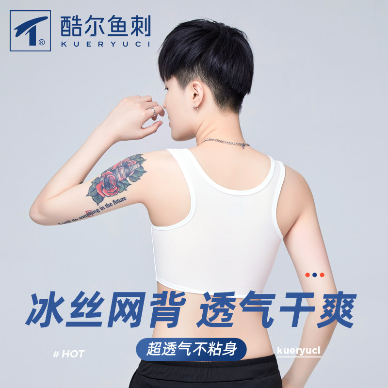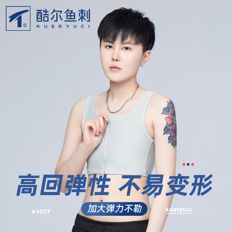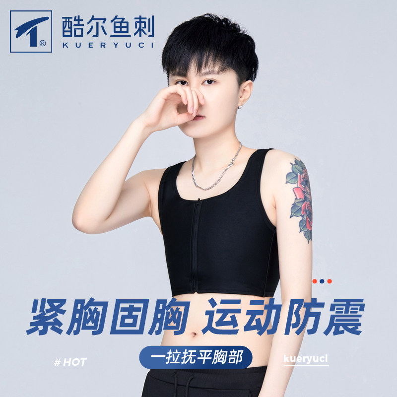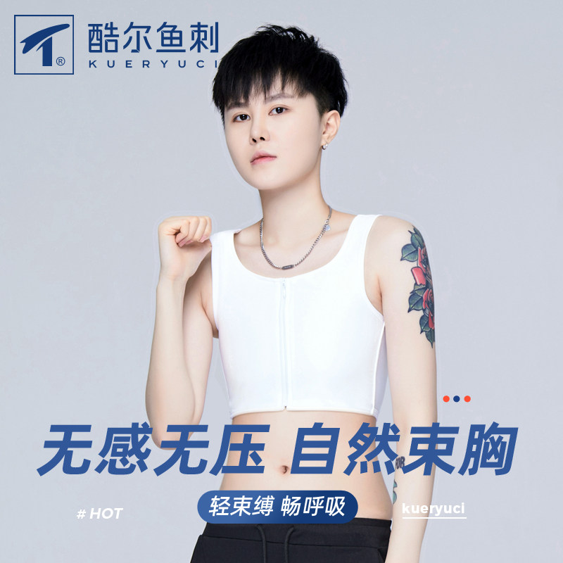 酷尔鱼刺束胸拉链平胸内衣女大胸显胸小冰丝缩胸无绷带超平薄款