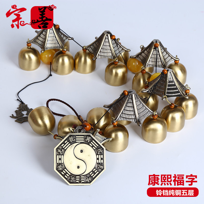 纯铜铜风铃挂饰镇宅八卦麒麟挂饰门饰风水风铃 6层18铃 5层15铃