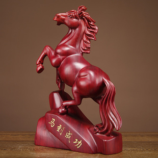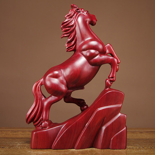 红花梨木雕马摆件实木雕刻工艺品红木马摆件木马摆件家居开业礼品