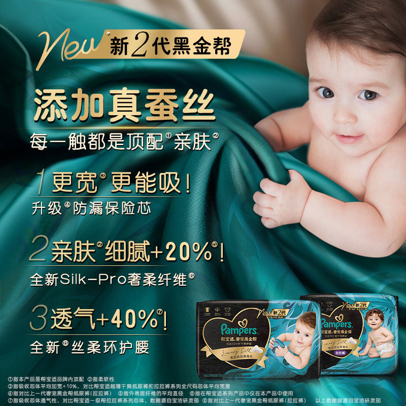 XXL拉拉裤 XL婴儿超薄透气尿不湿通用 帮宝适奢宠黑金帮纸尿裤