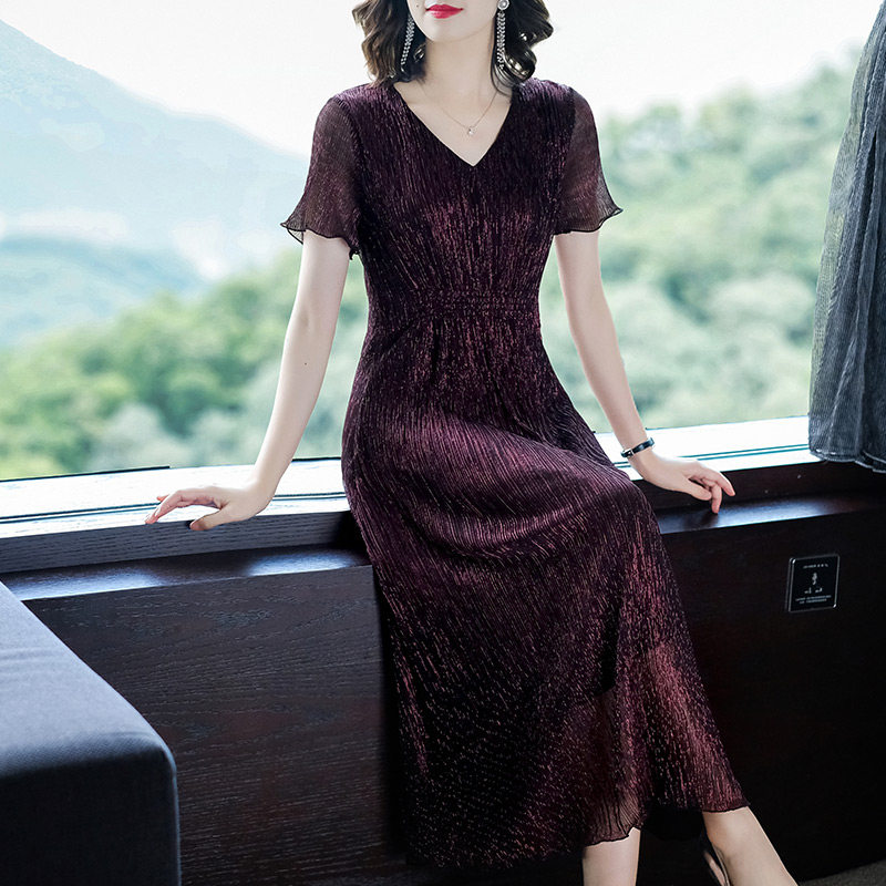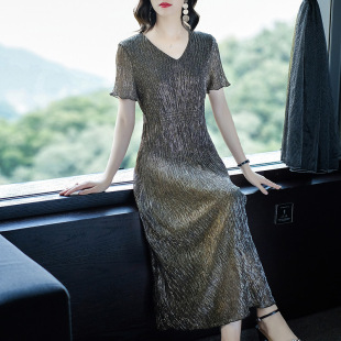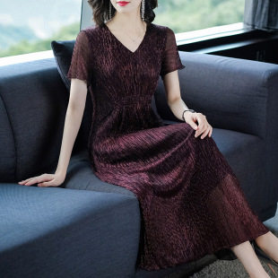 复古裙过膝很仙 法式 裙子夏连衣裙2024新款 高端气质收腰V领中长款