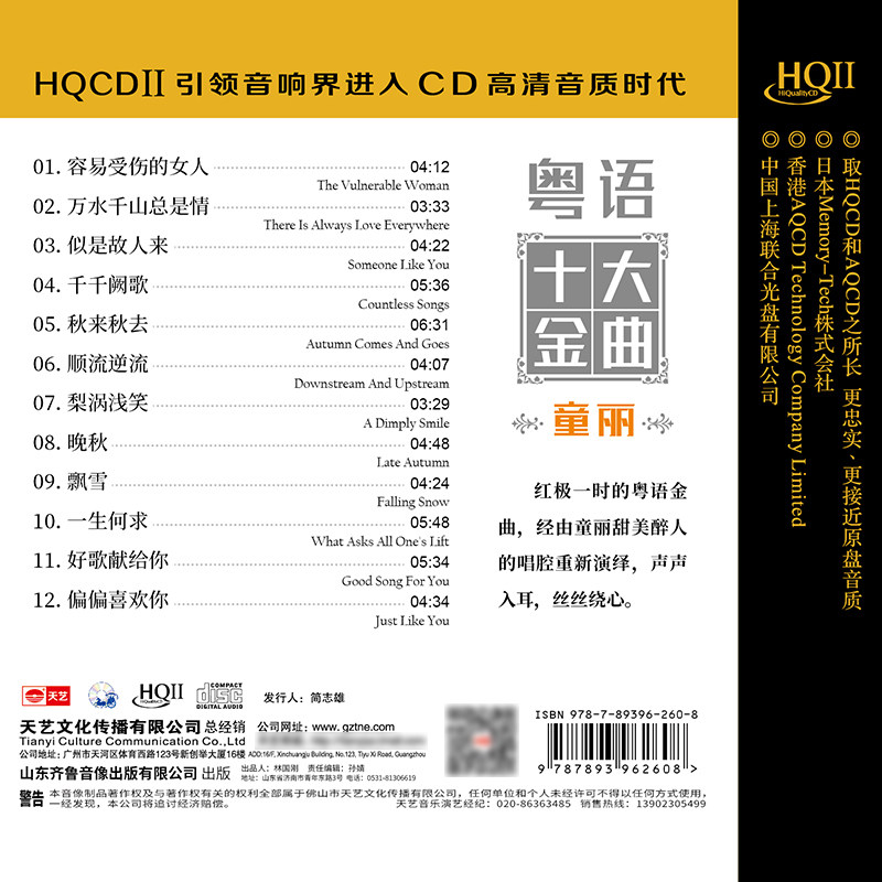高品质发烧cd碟片 HIFI 天艺唱片HQCDII童丽 粤语十大金曲