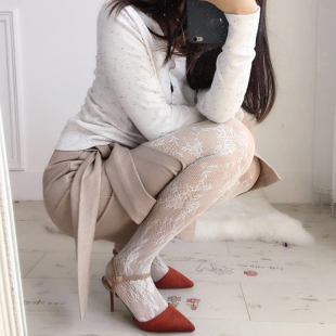 日系春夏白色复古蕾丝网袜洛丽塔镂空性感提花连裤 袜女白色丝袜子