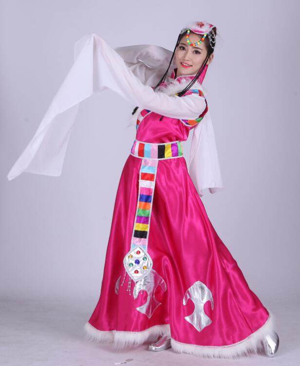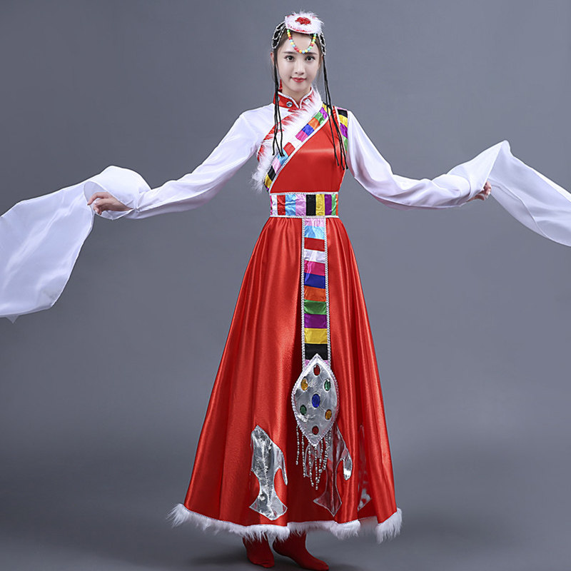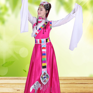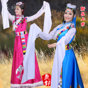 服装 新款 长袖 水袖 西藏舞蹈雪莲花表演服 少数民族藏族舞蹈演出服装