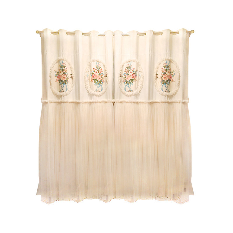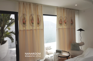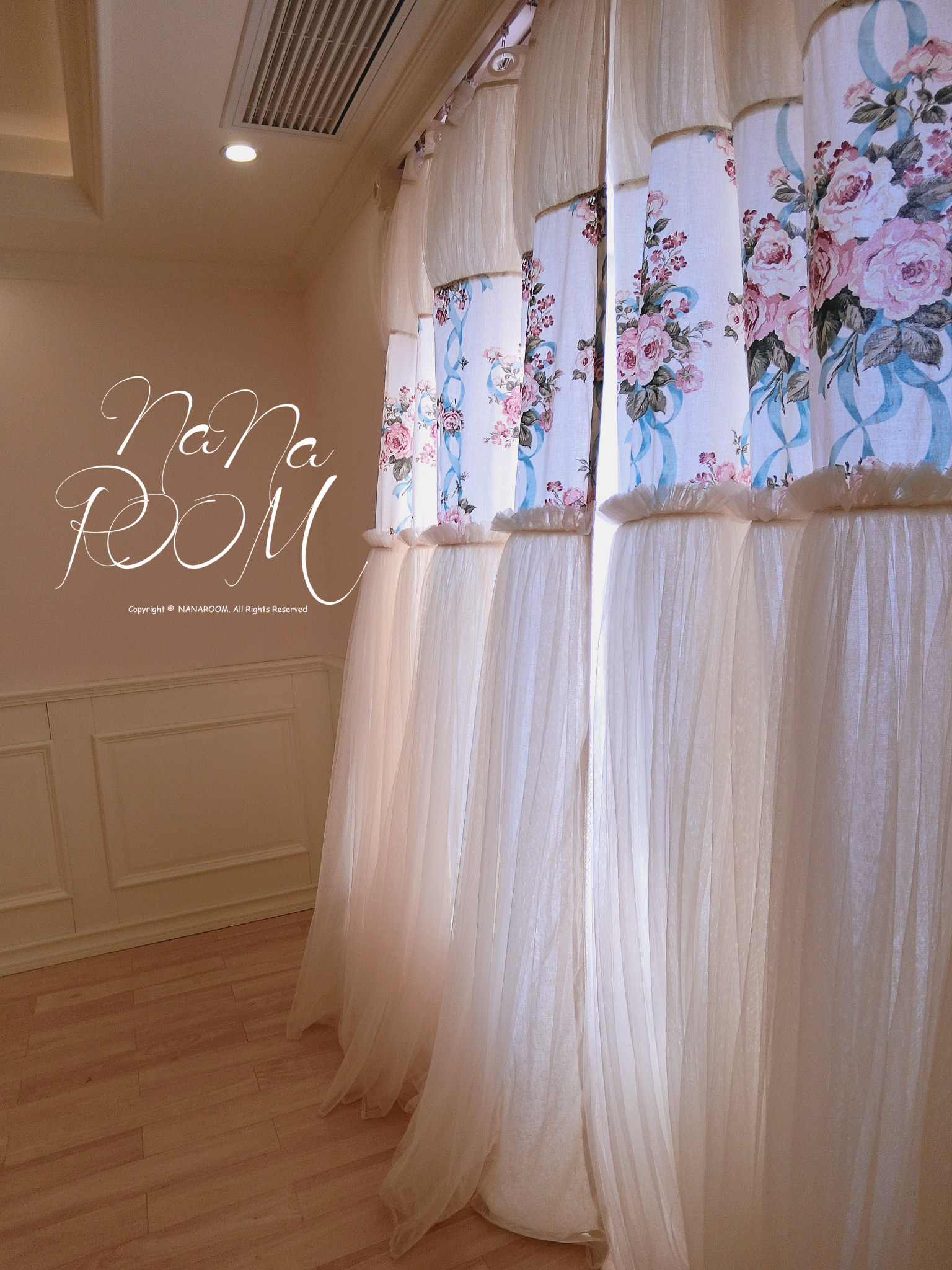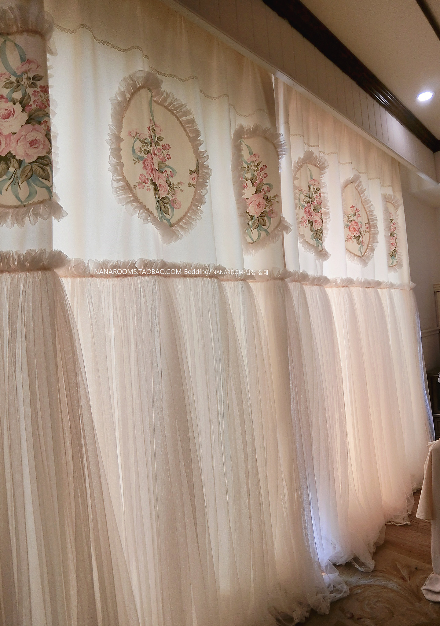 NANAROOM韩国进口订做米色棉麻立体玫瑰花朵木耳边梦幻层层纱窗帘