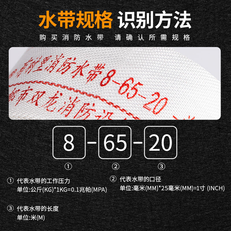 25米8型接口水枪水带 20口径65mm水管2.5寸20 消防国标水带8
