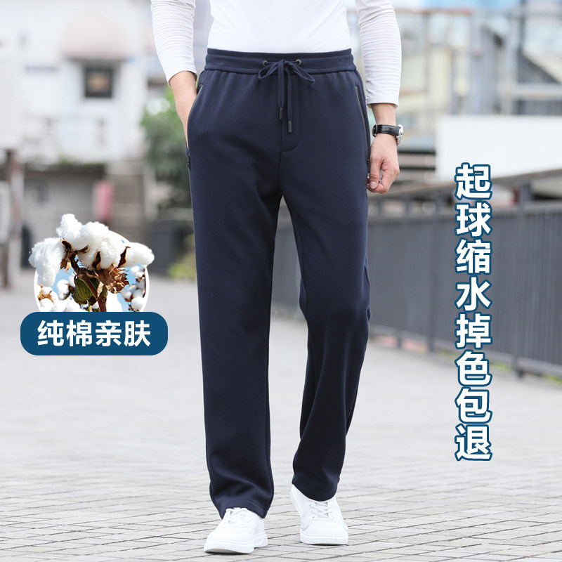 男士 加绒男裤 运动裤 中老年爸爸冬季 子 直筒宽松休闲裤 纯棉秋冬款