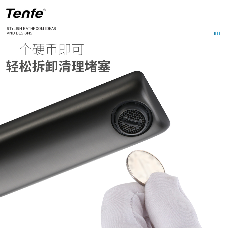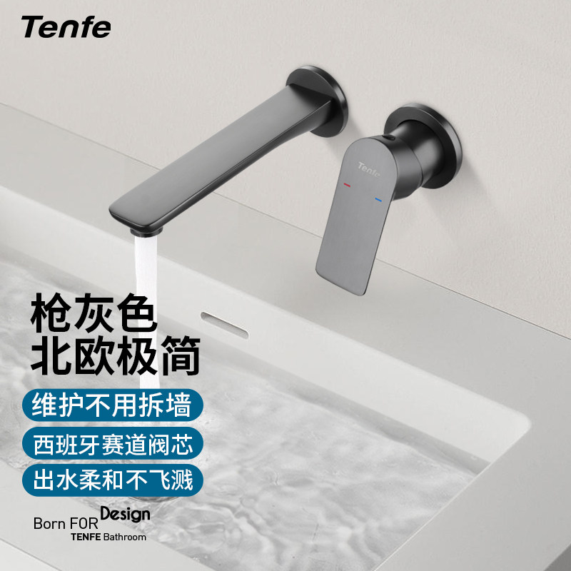 墙出墙排水龙头热熔 冷热隐藏式 鼎菲极简枪灰色暗装 面盆龙头入墙式