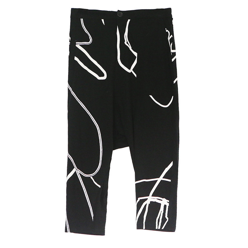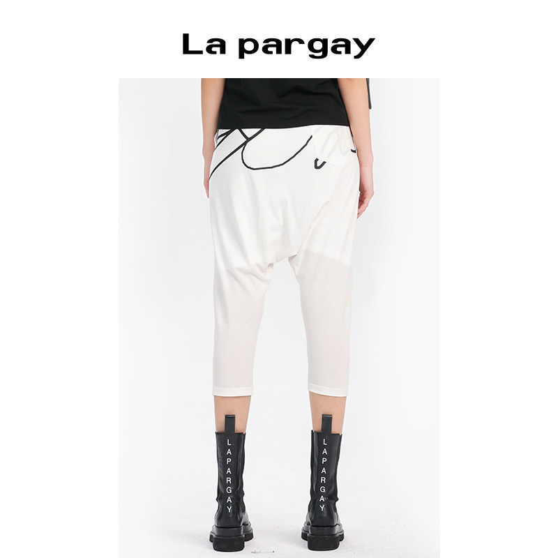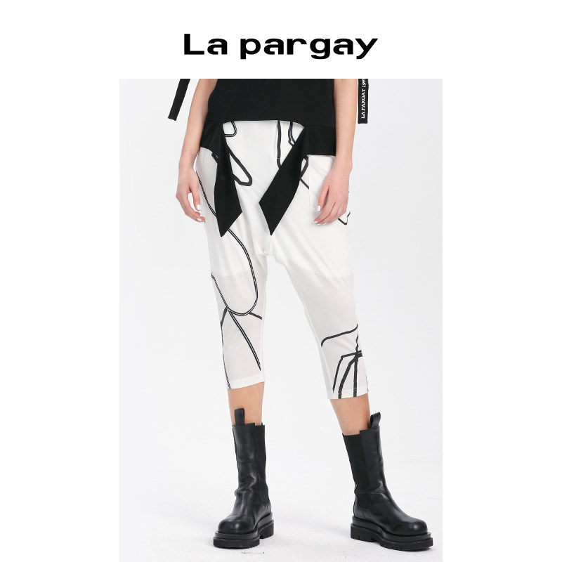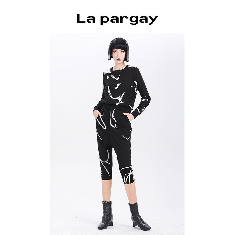 子个性 黑色裤 时尚 女裤 Lapargay纳帕佳新款 抽象线条胶印休闲裤 女装