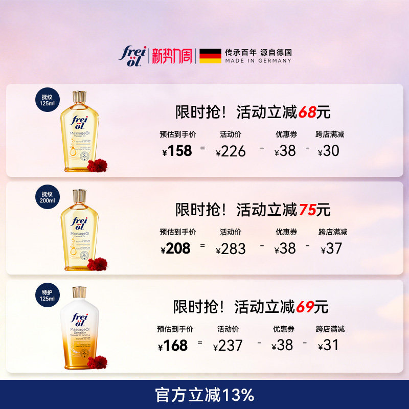 freiol福来抚纹油身体油防纹滋润按摩保湿 补水身体护理精华油